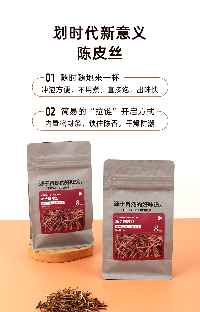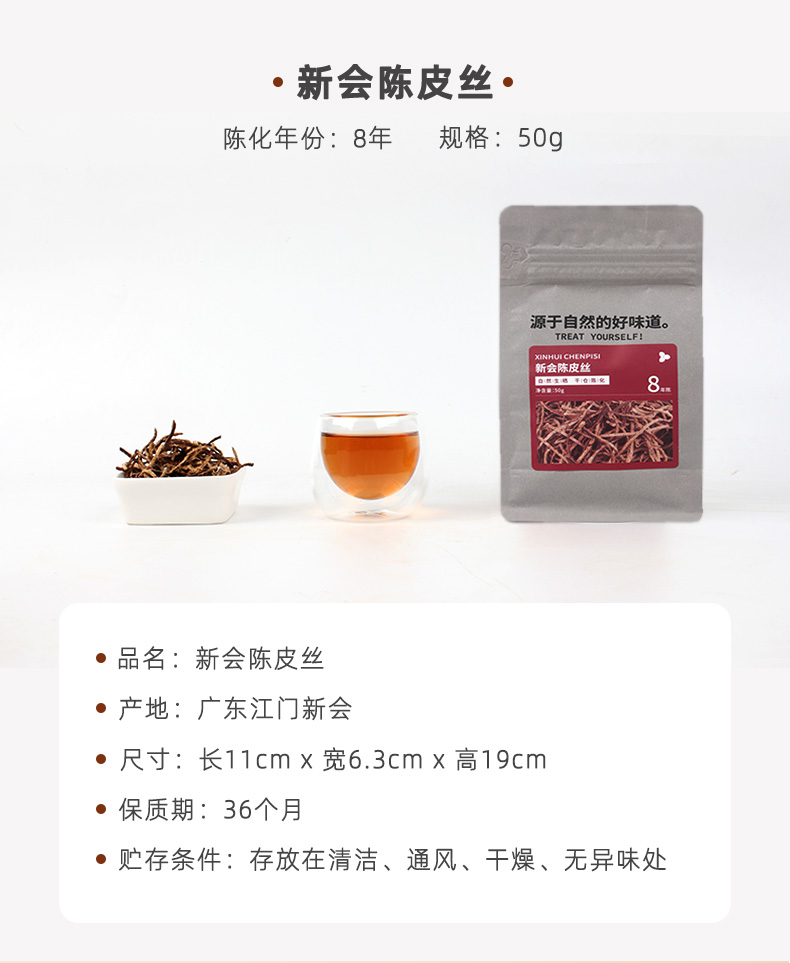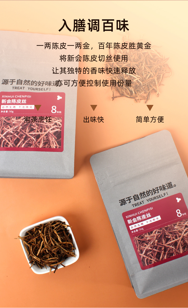 柑天下 正宗新会八年陈皮丝50克密封袋装干仓老陈皮
