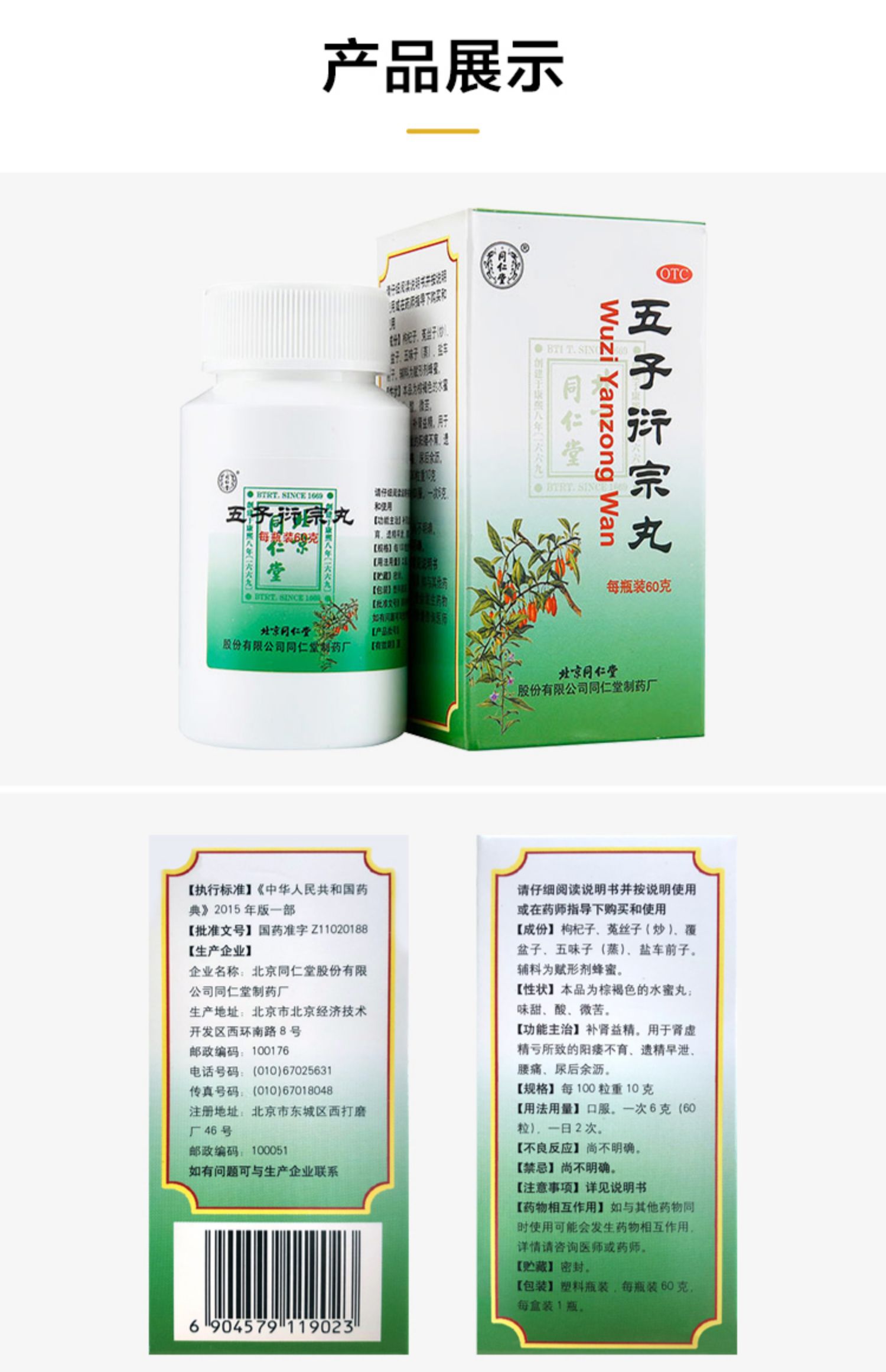 北京同仁堂 五子衍宗丸60g/盒 男性补肾中药阳痿遗精早泄肾阳亏虚