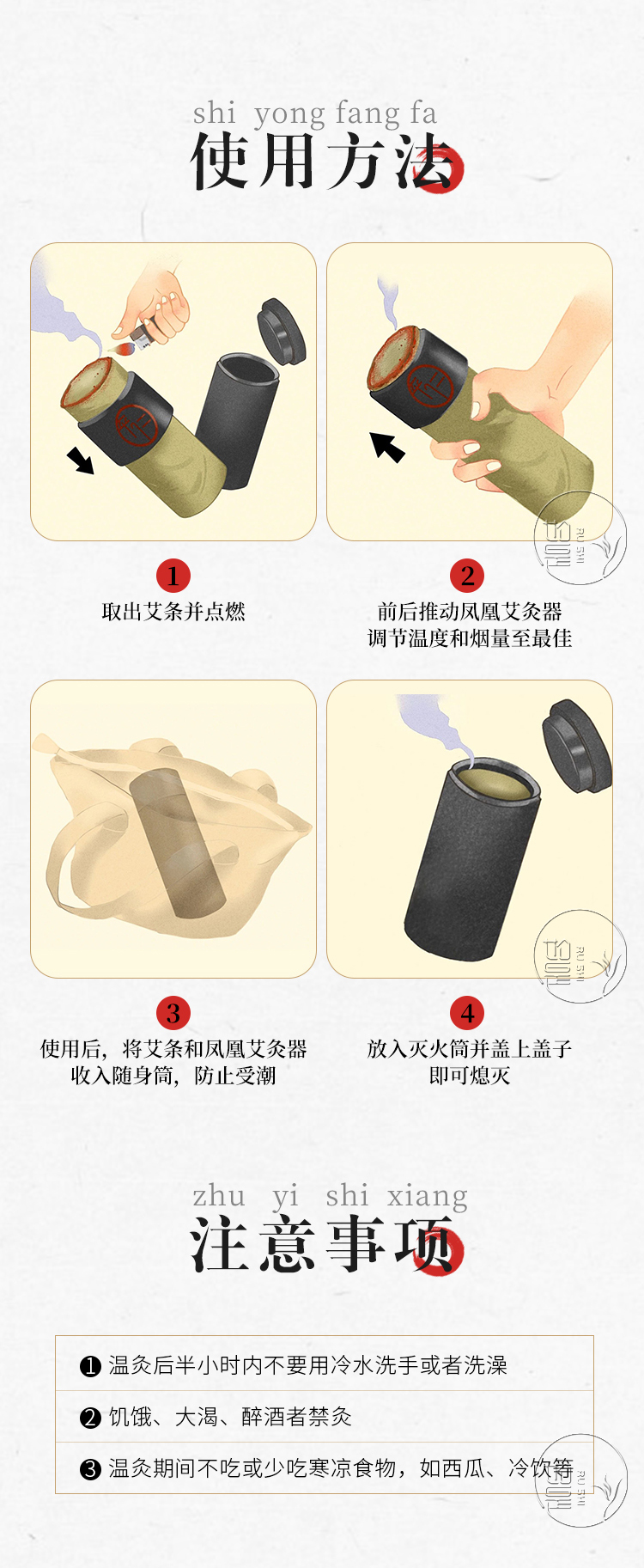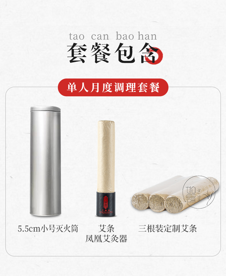 【单人月度调理套装398】凤凰艾灸||艾灸神器|艾融融纯艾绒艾条梧桐无烟凤凰艾灸体验装长艾条4支自助艾灸大椎