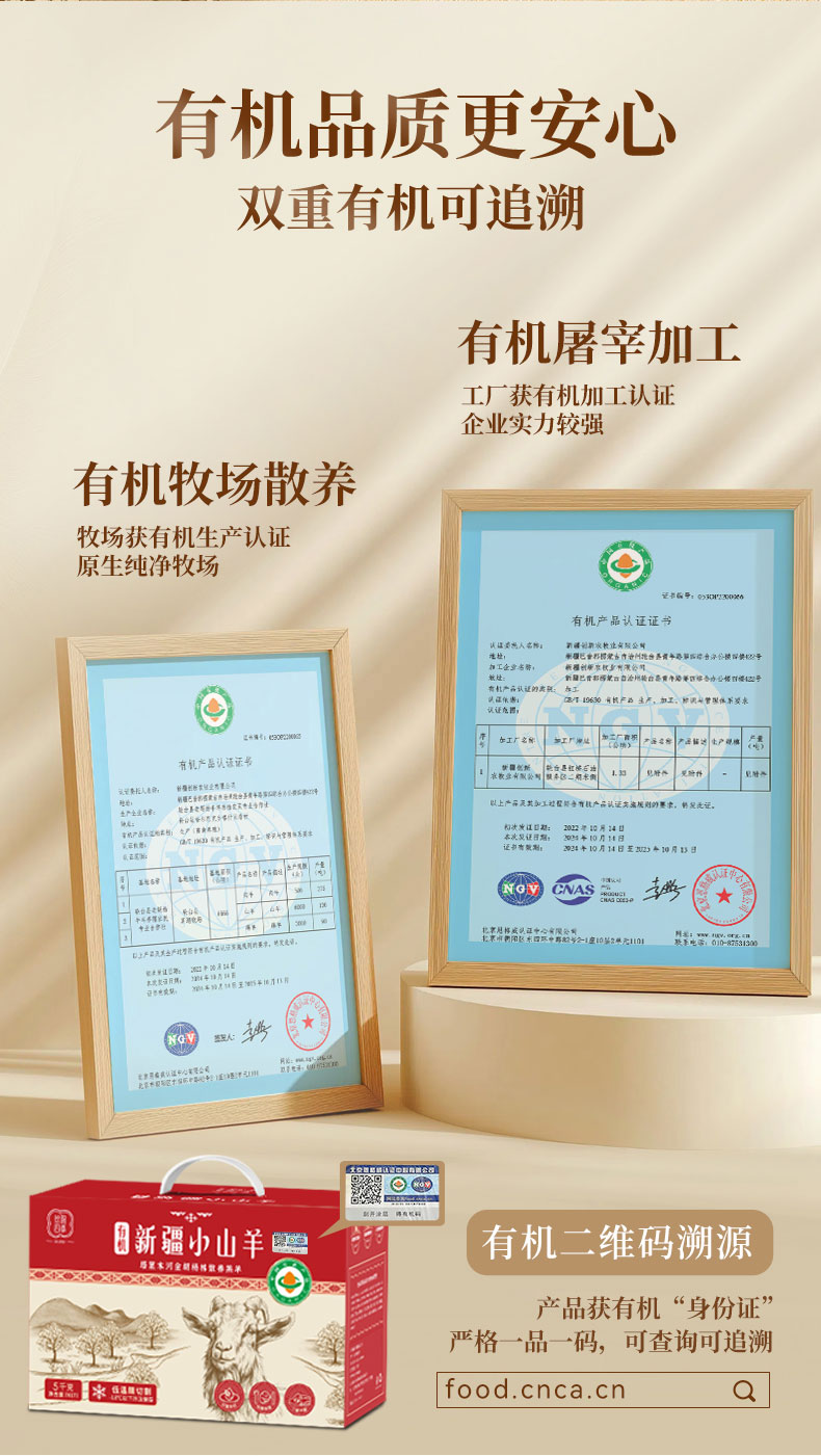 丝路四季有机小山羊 冰碴驹俐 羊肉礼盒 新疆有机羊肉 有机认证