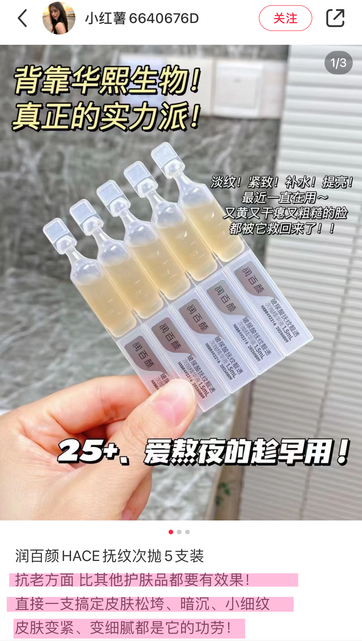 一支搞定早C晚A❗99到手25支❗官旗30支439❗【润百颜HACE玻尿酸抚纹次抛】王炸次抛抗皱精华TOP1!