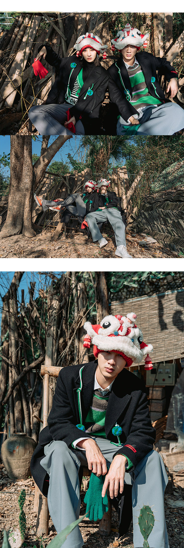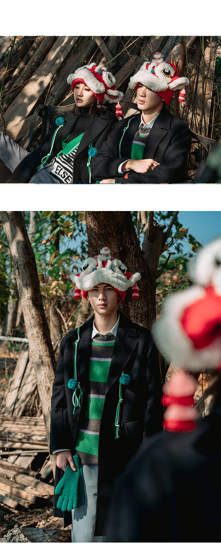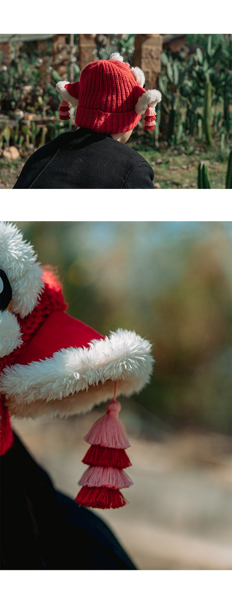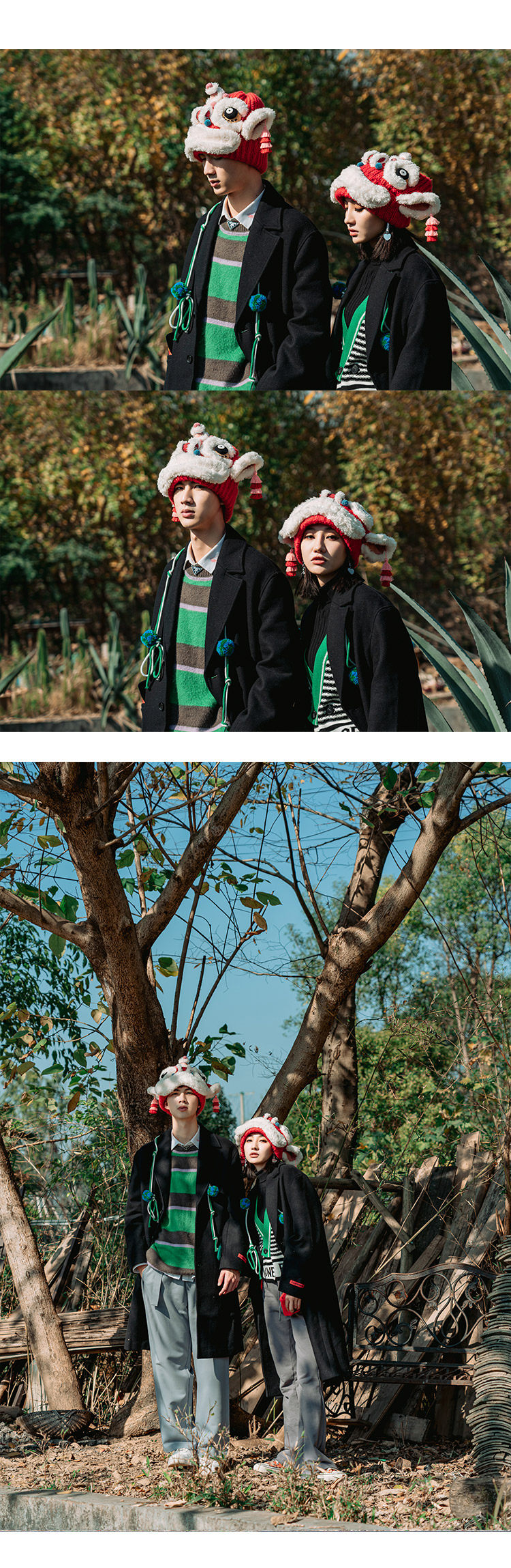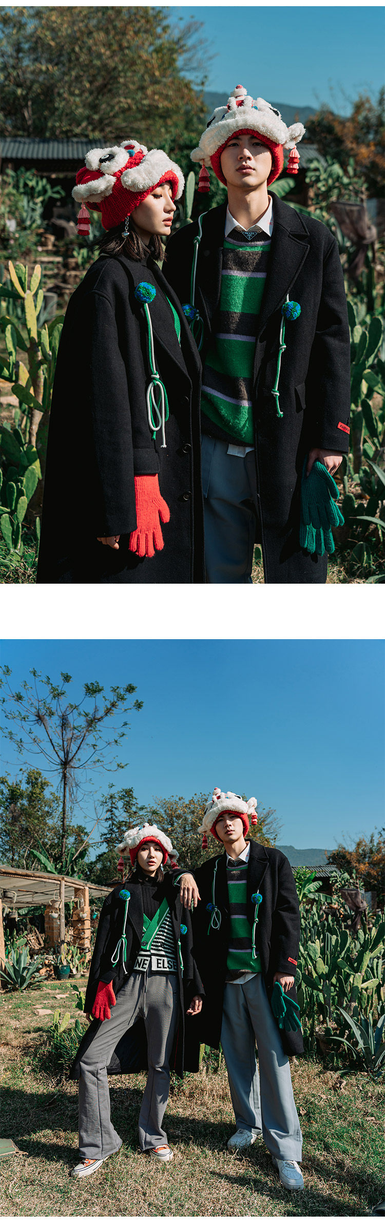 【1.21-2.6停发】芽小七原创国潮红色醒狮毛线保暖帽子成品男女冬季东北加绒防寒
