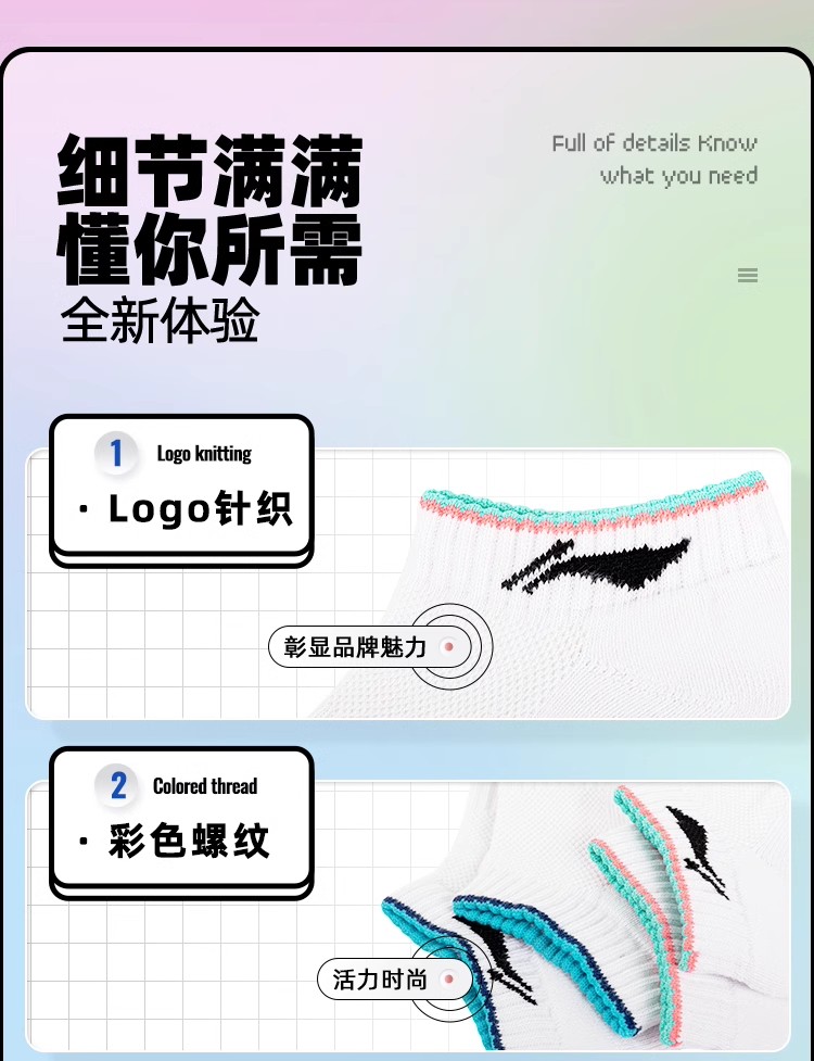 李宁羽毛球袜AWST064 男女款羽毛球袜运动户外耐磨羽毛球袜