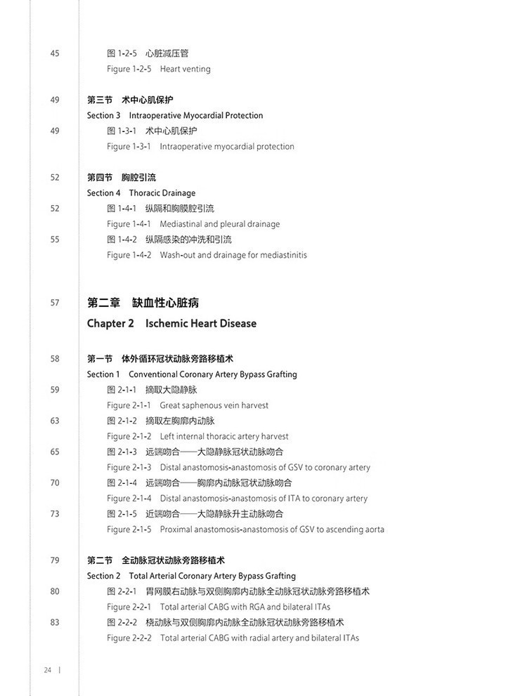 【1】本书为中英文双语,以彩色手绘图谱的形式介绍了成人心脏大血管疾病的手术治疗方法。全书共分为八篇36章,涵盖心脏病手术治疗的常规准备(切口位置、体外循环建立、心肌保护),冠脉疾病、瓣膜疾病、大血管疾病等的外科治疗以及人工心脏、心脏移植技术等。 【2】术中图谱均为彩色手绘图片,真实还原手术关键步骤的同时予以适当艺术加工,使得解剖部位清晰突出,可视性强,有助于读者理解、想象及比照,适合从事心脏外科专业的医护人员阅读学习。 【3】编者在本书的编撰过程中,与绘者反复沟通,将40余年临床经验融汇于图谱中。同时,本书紧跟心脏外科手术技术的发展,对近年来国际主流手术方式的选择、新兴的手术技巧、生命支持技术加以综合阐述。