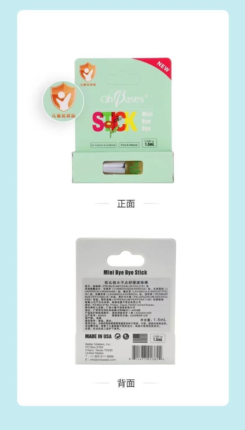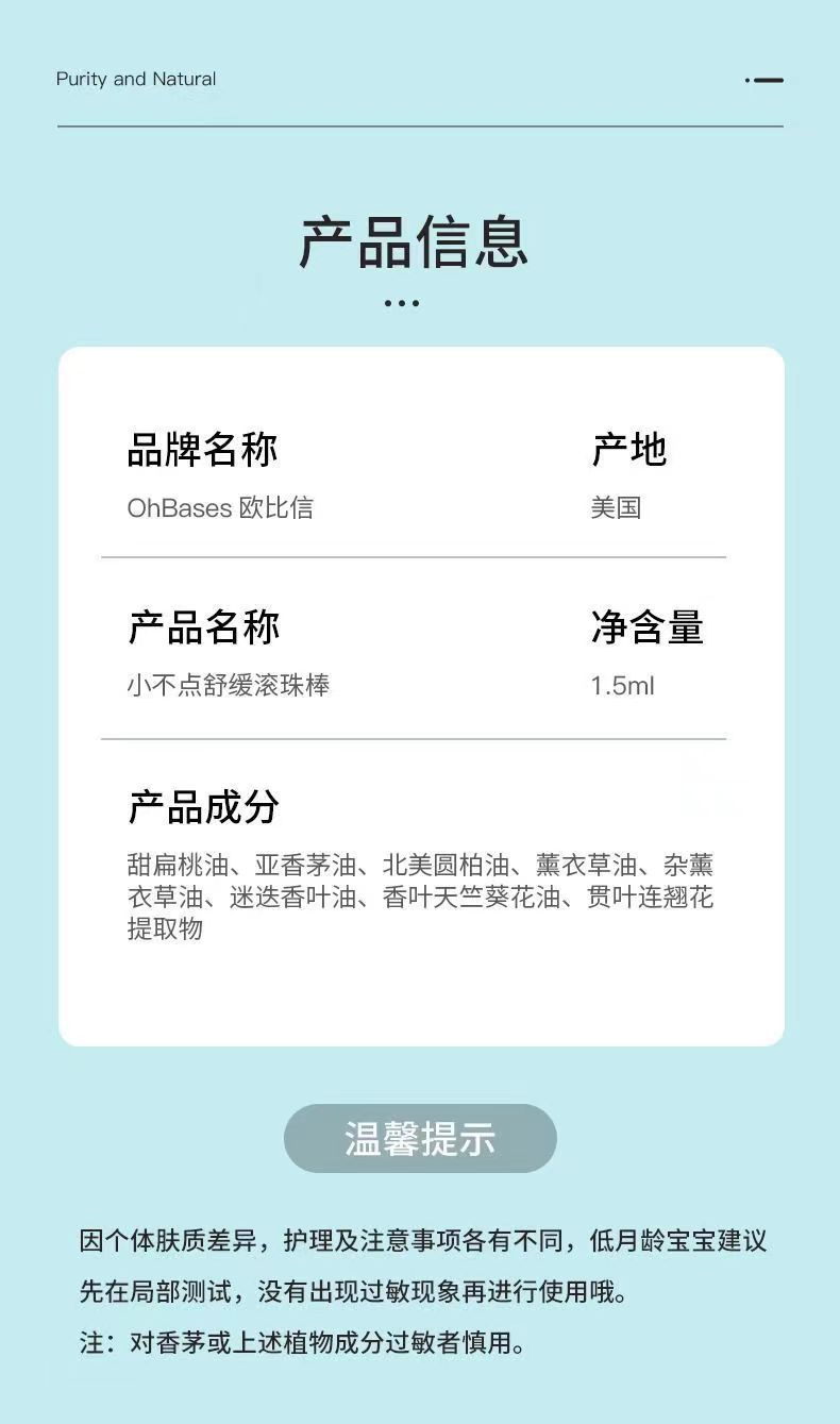 美国OhBases欧比信婴儿驱叮紫草滚珠儿童防叮舒缓液