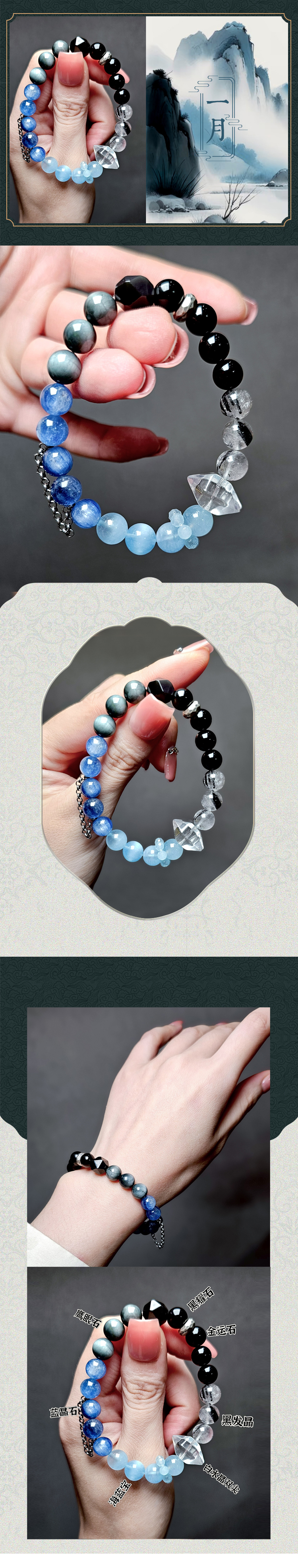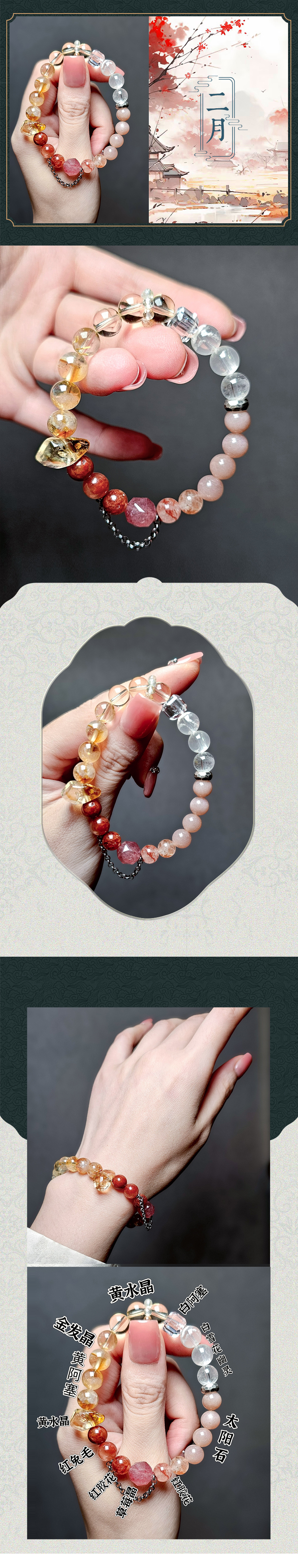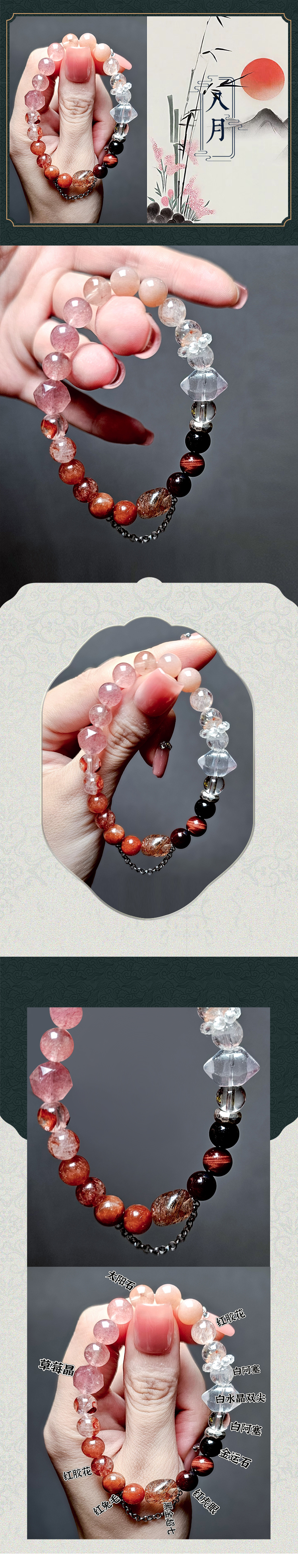 尖晶石多圈红色尖晶石水晶新月许愿水晶手链