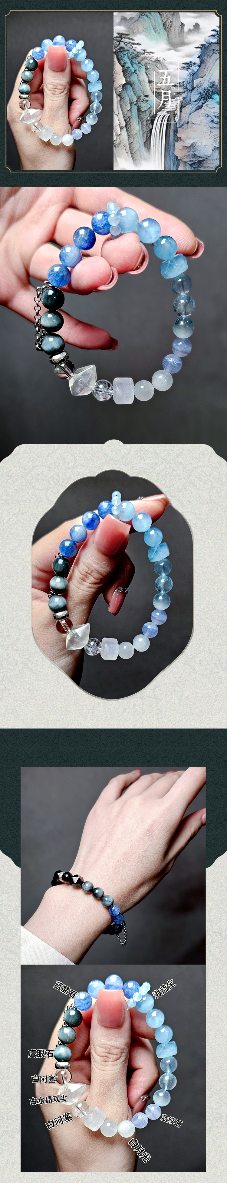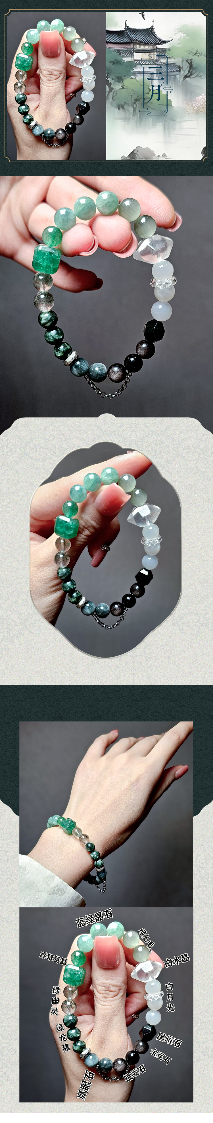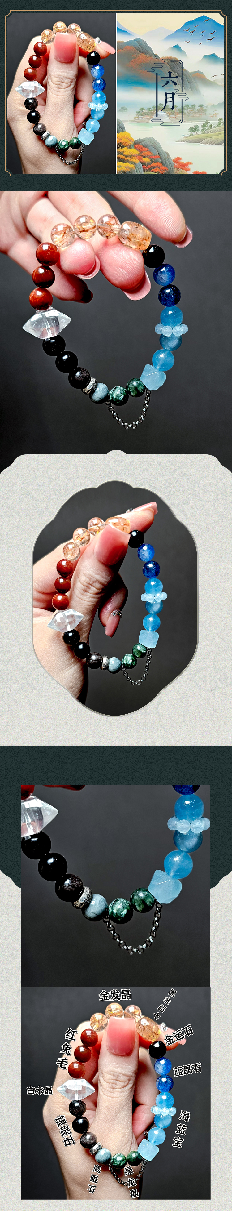 尖晶石多圈红色尖晶石水晶新月许愿水晶手链