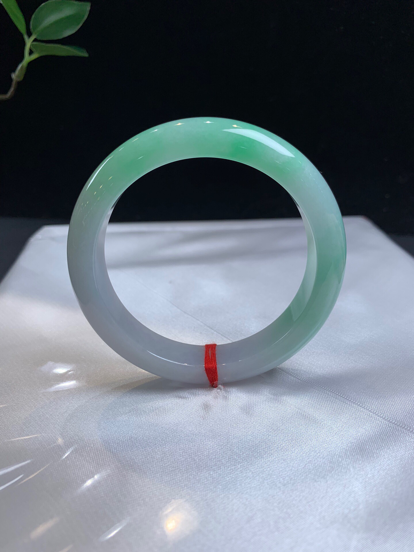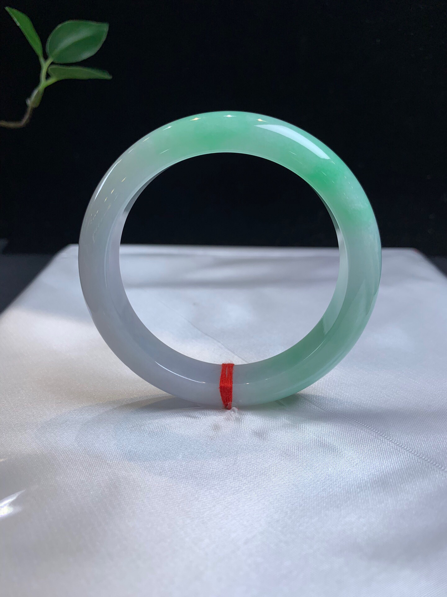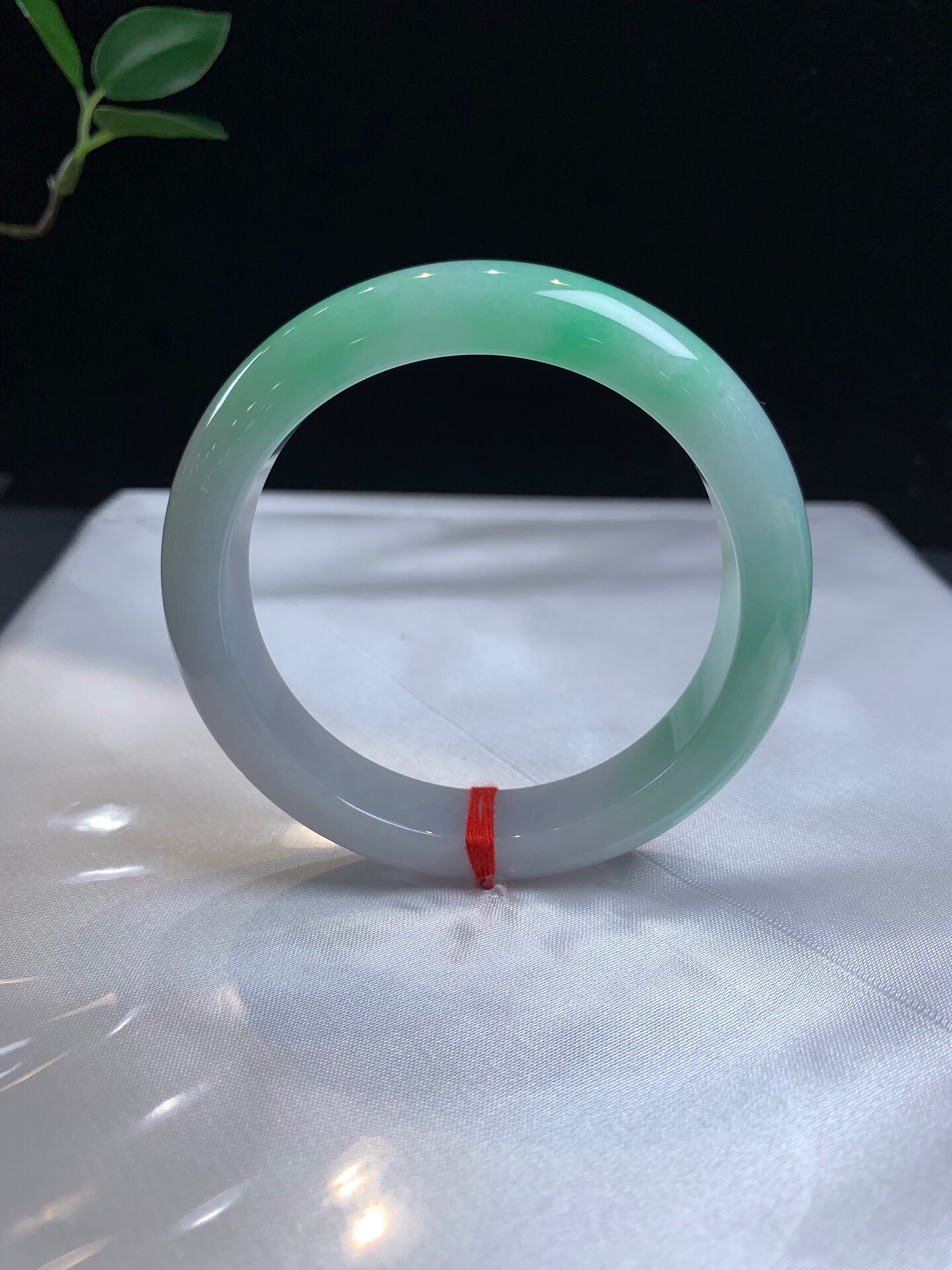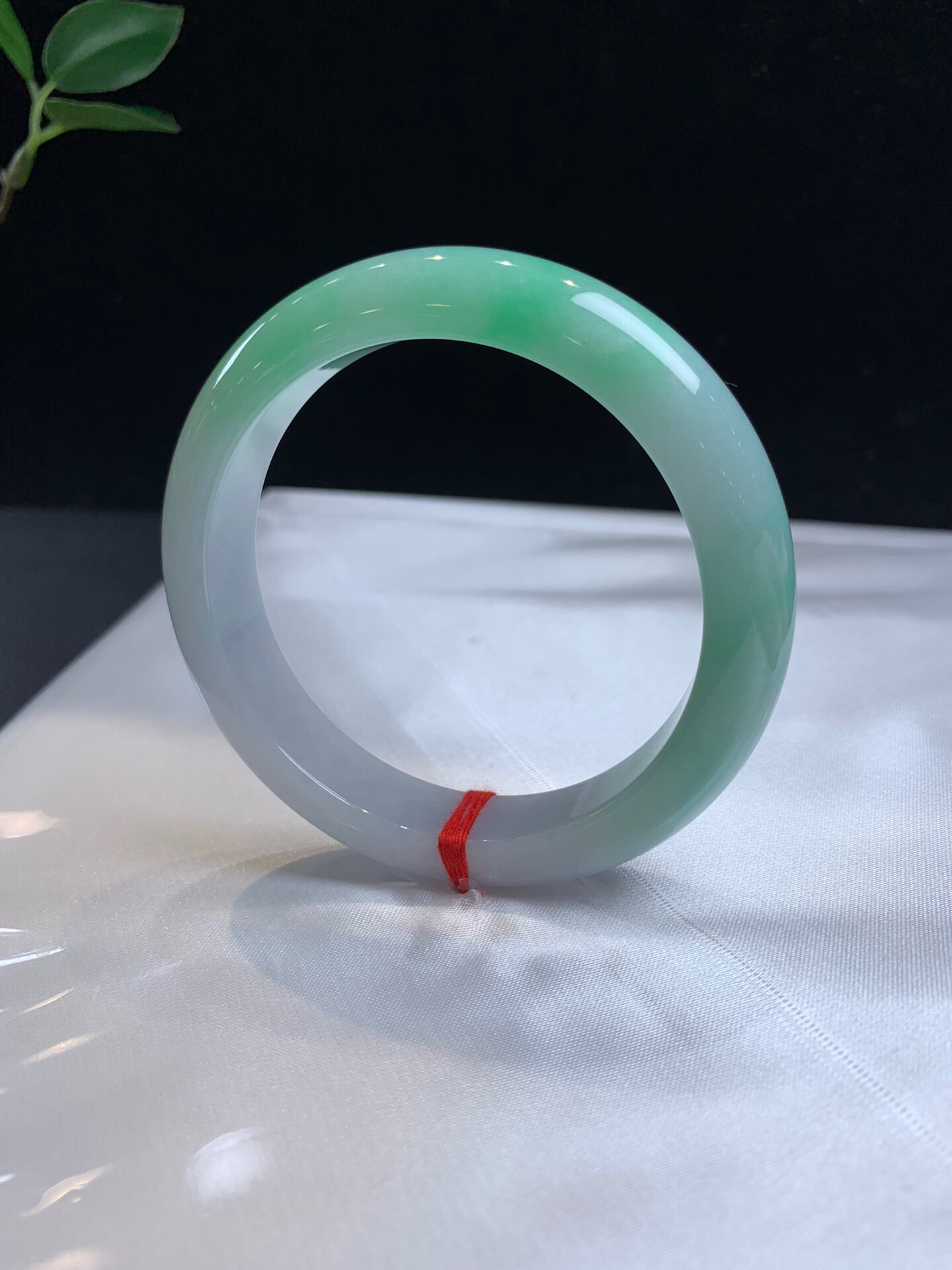 612702,55绿底正圈手镯,12.5-8.2mm,一半带绿底,颜色过渡非常自然,干净清新。完美。超值价💰55500 #优石客珠宝#香玉荟萃