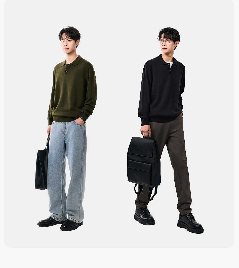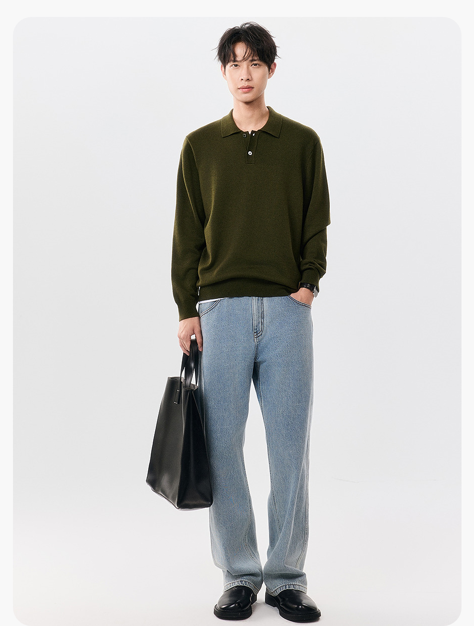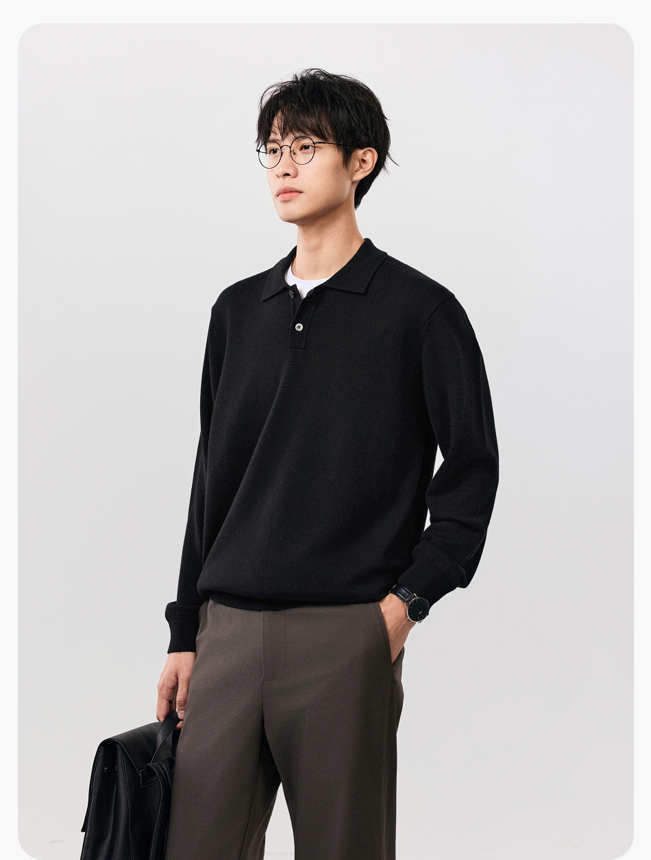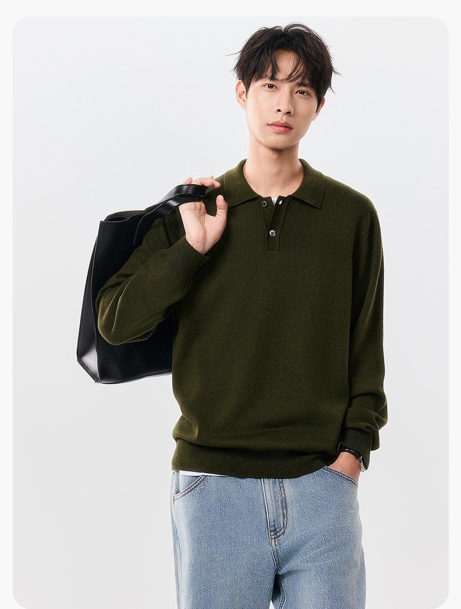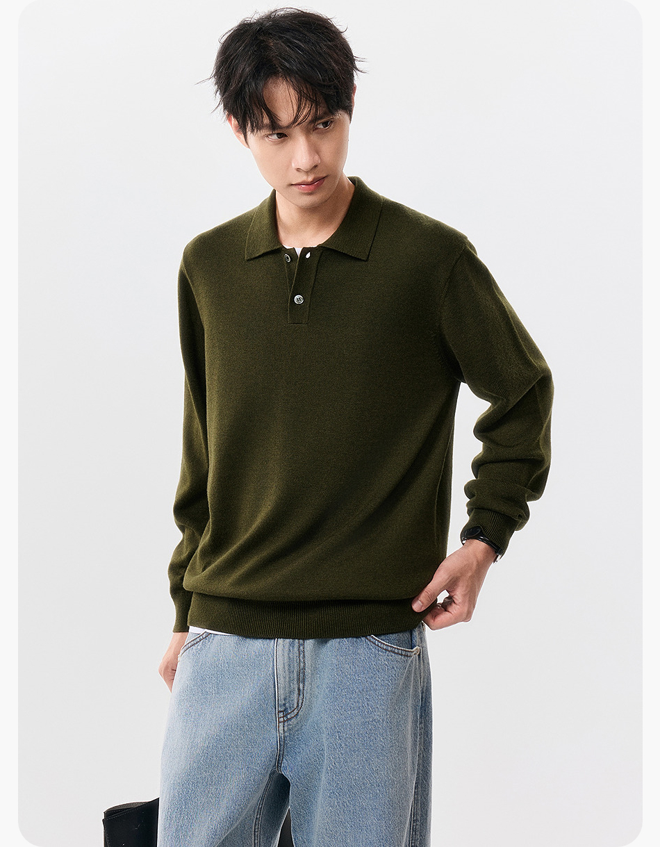 棉仓357826001-微宽松扬子全羊毛POLO领毛衣