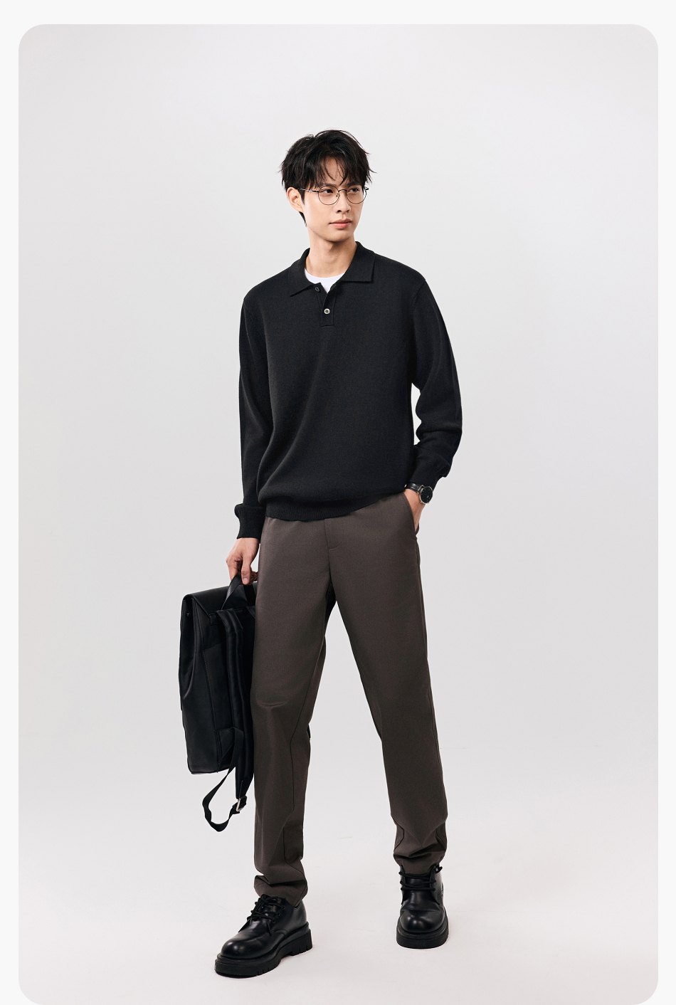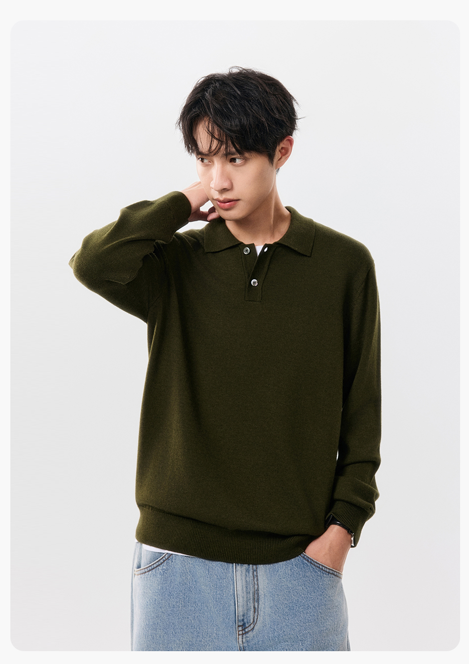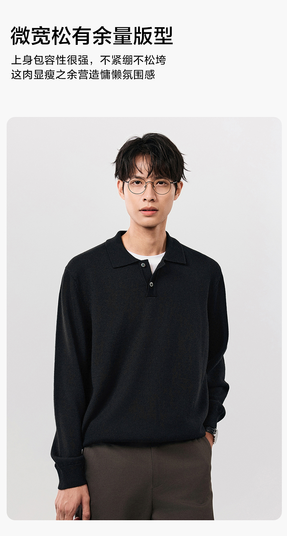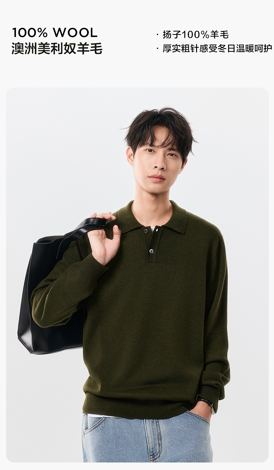 棉仓357826001-微宽松扬子全羊毛POLO领毛衣