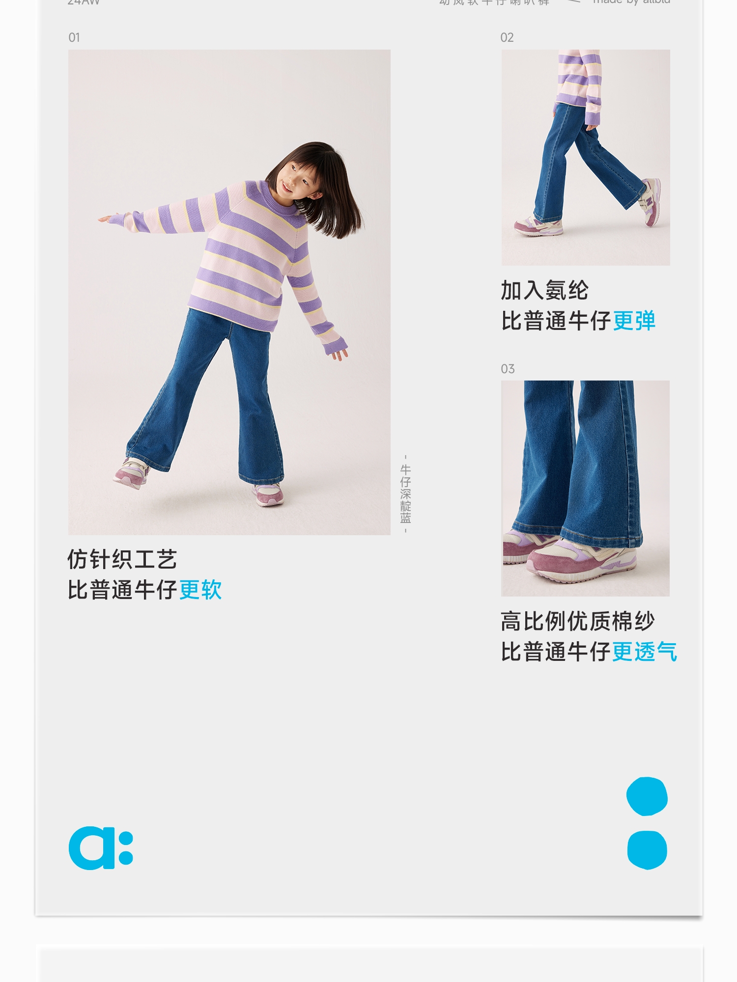 【秋Vol.1】幼岚童装软牛仔喇叭裤舒适柔软修身有型24秋季新款女童百搭打底裤长裤ZY