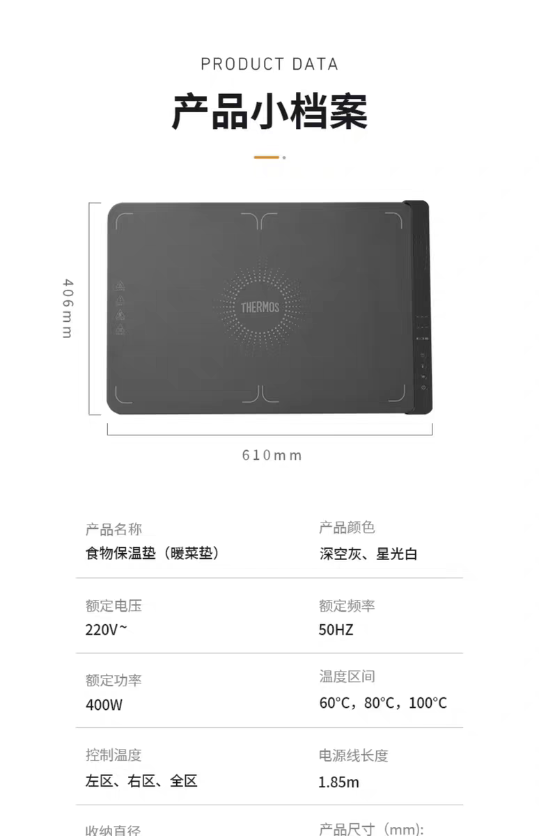 【春上新】10楼 膳魔师 膳魔师折叠柔性暖菜板加热饭菜神器家用饭菜保温垫吊牌价399元 活动价339元