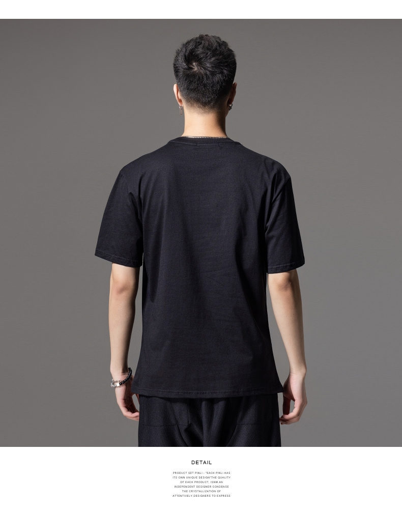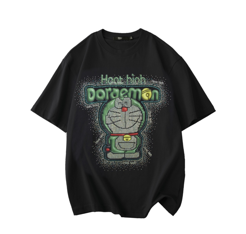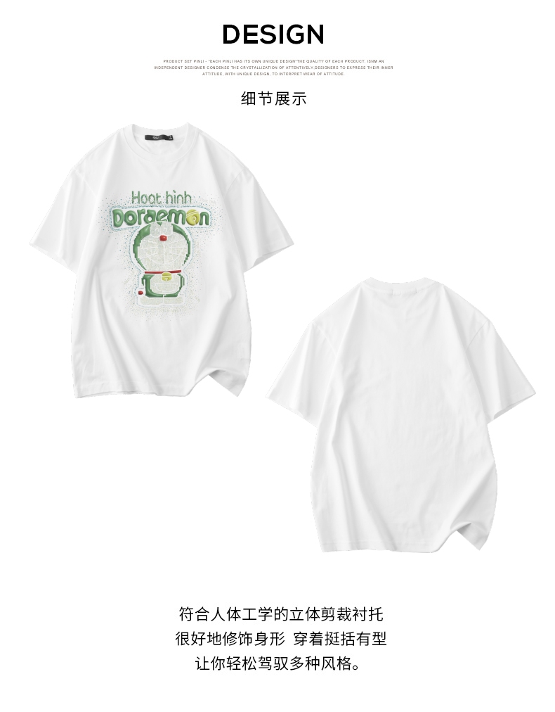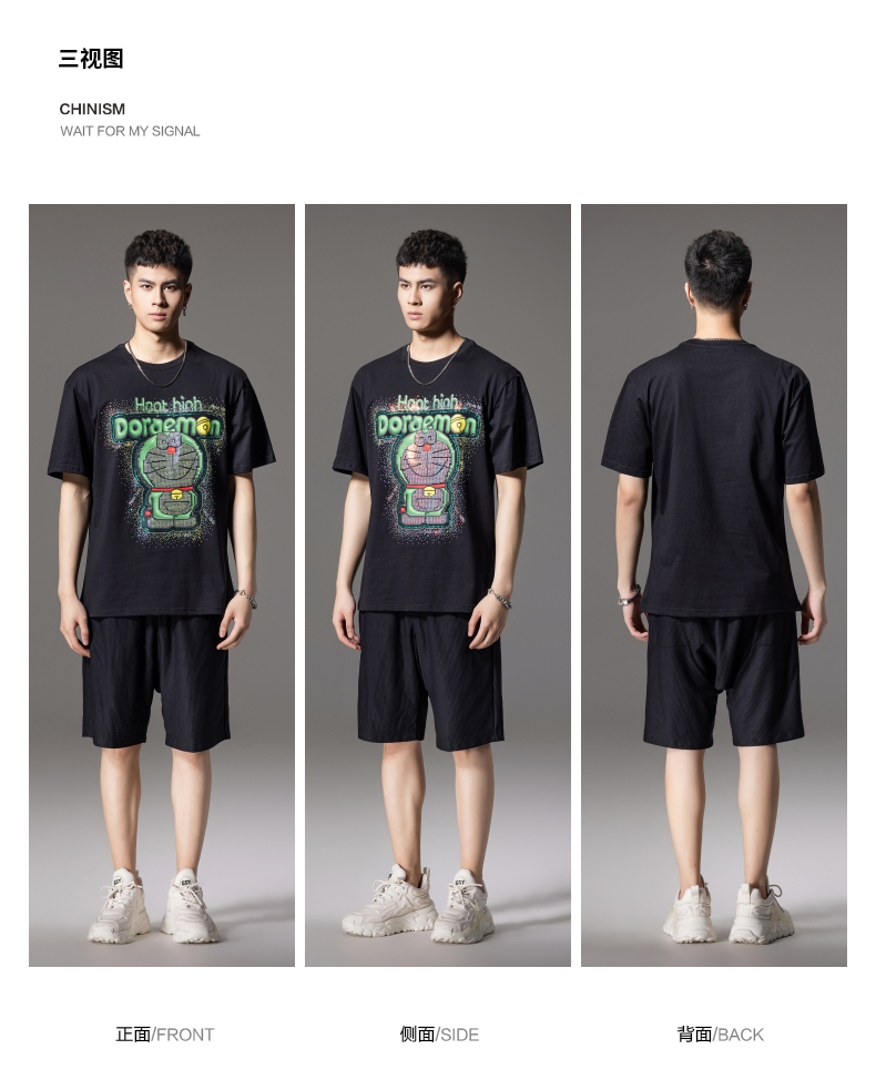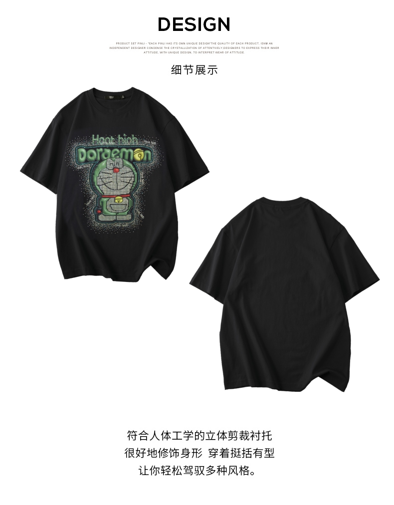 PINLI品立夏季新款印花烫钻纯棉短袖T恤男士潮牌卡通休闲体恤BG242111040