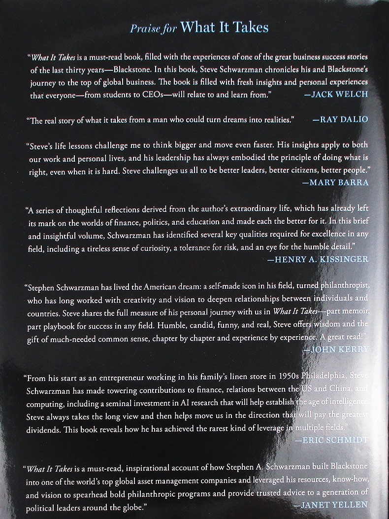 书名:What It Takes我的经验与教训黑石集团创始人苏世民个人传记