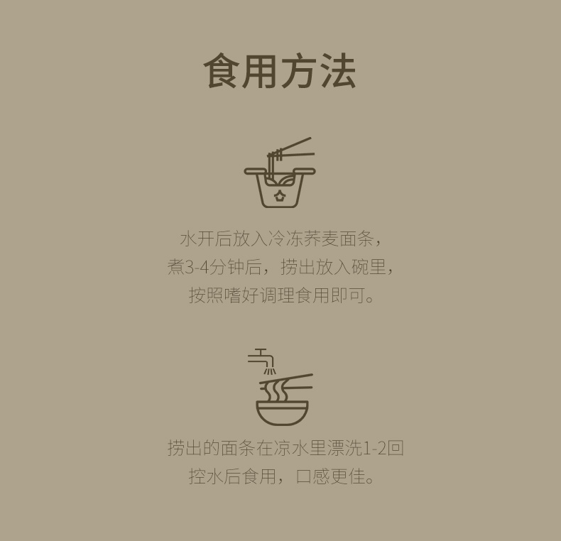 【食用方法】可以做热面、冷面、沙拉面、拌面、汤面、炒面、意大利面、日式荞麦面