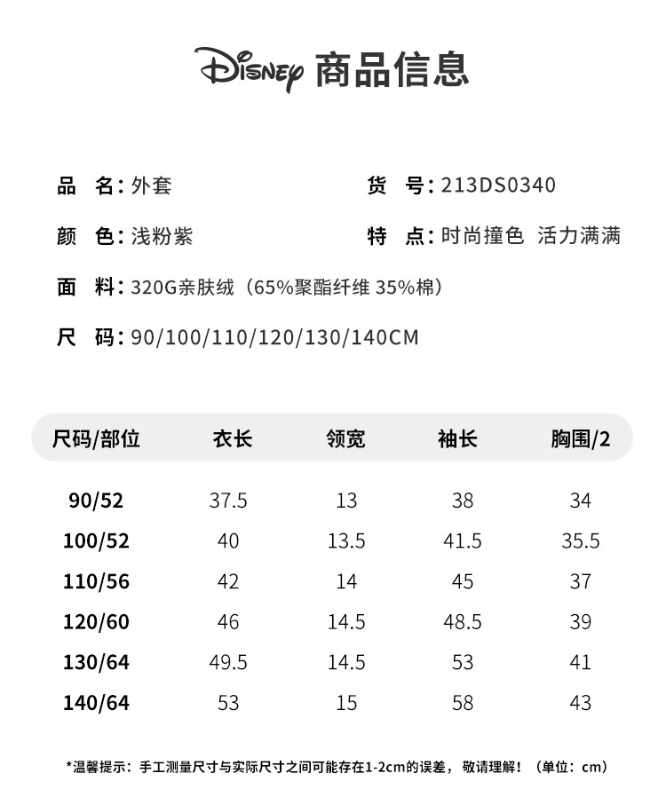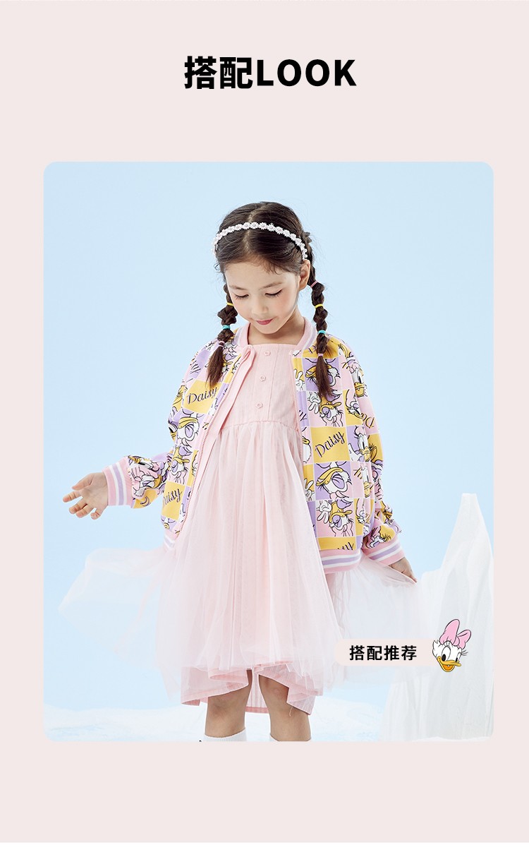 【商场同款】迪士尼童装 儿童春秋加绒保暖外套黛丝满印女童棒球服