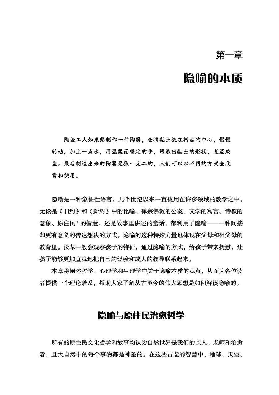第一部分“隐喻的棱镜”详述了“隐喻”的性质和历史,探讨了在各种原住民哲学、东西方文化以及神经生理学中的隐喻到底是什么,并帮助读者将隐喻应用在儿童和家庭治疗之中。
