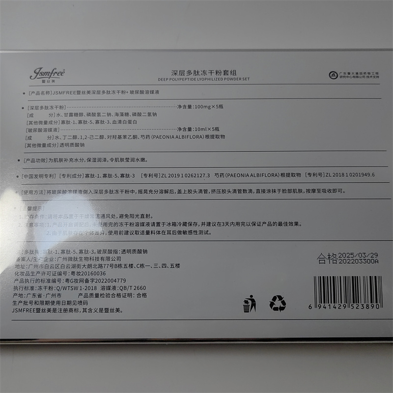 暨丝美深层多肽冻干粉100mg+玻尿酸溶媒液10ml*5组 暨大出品