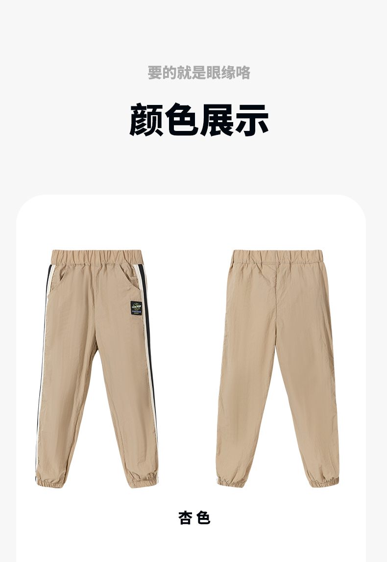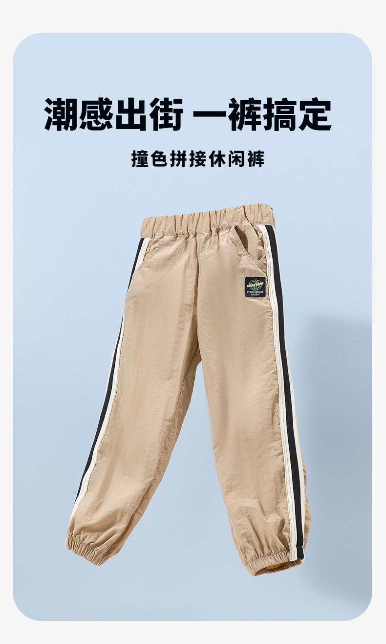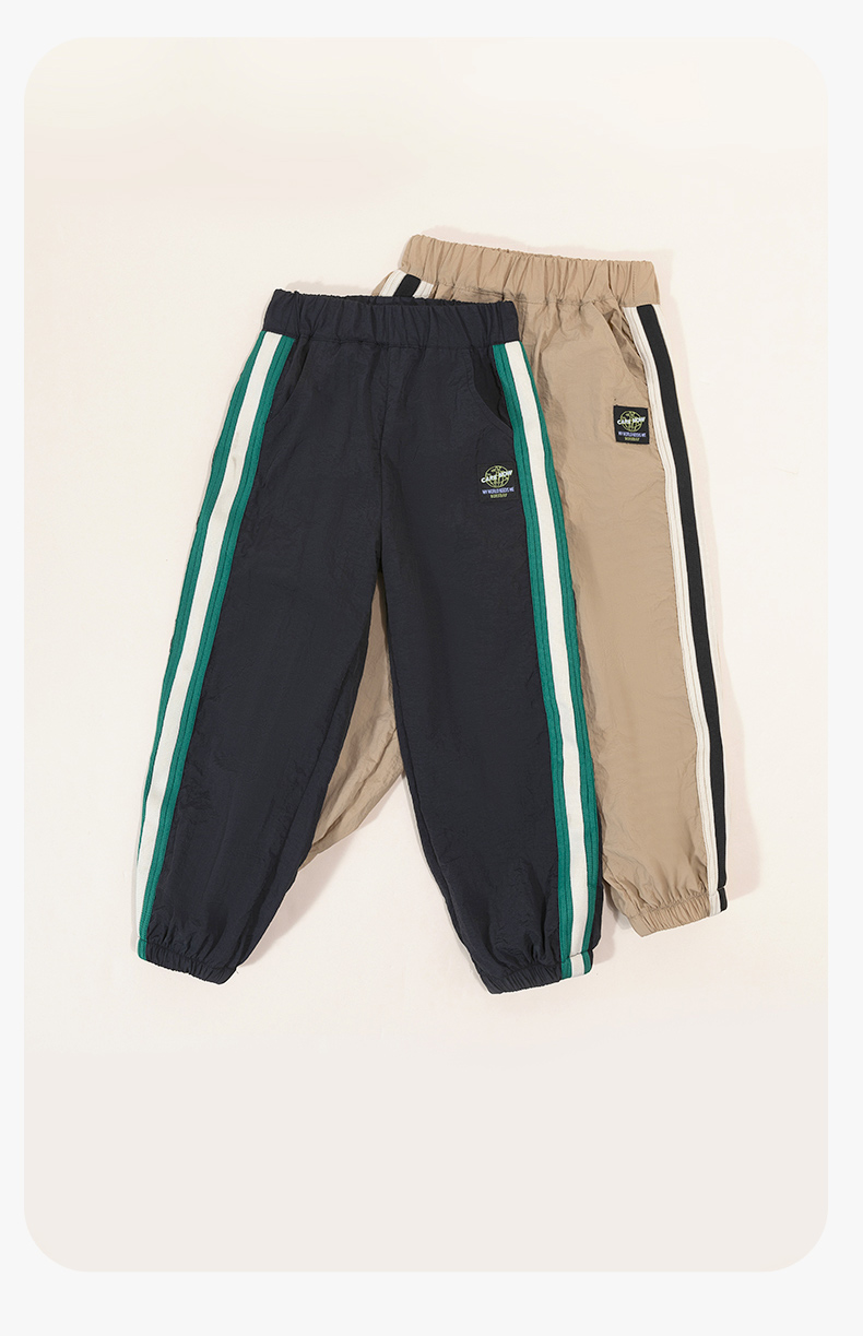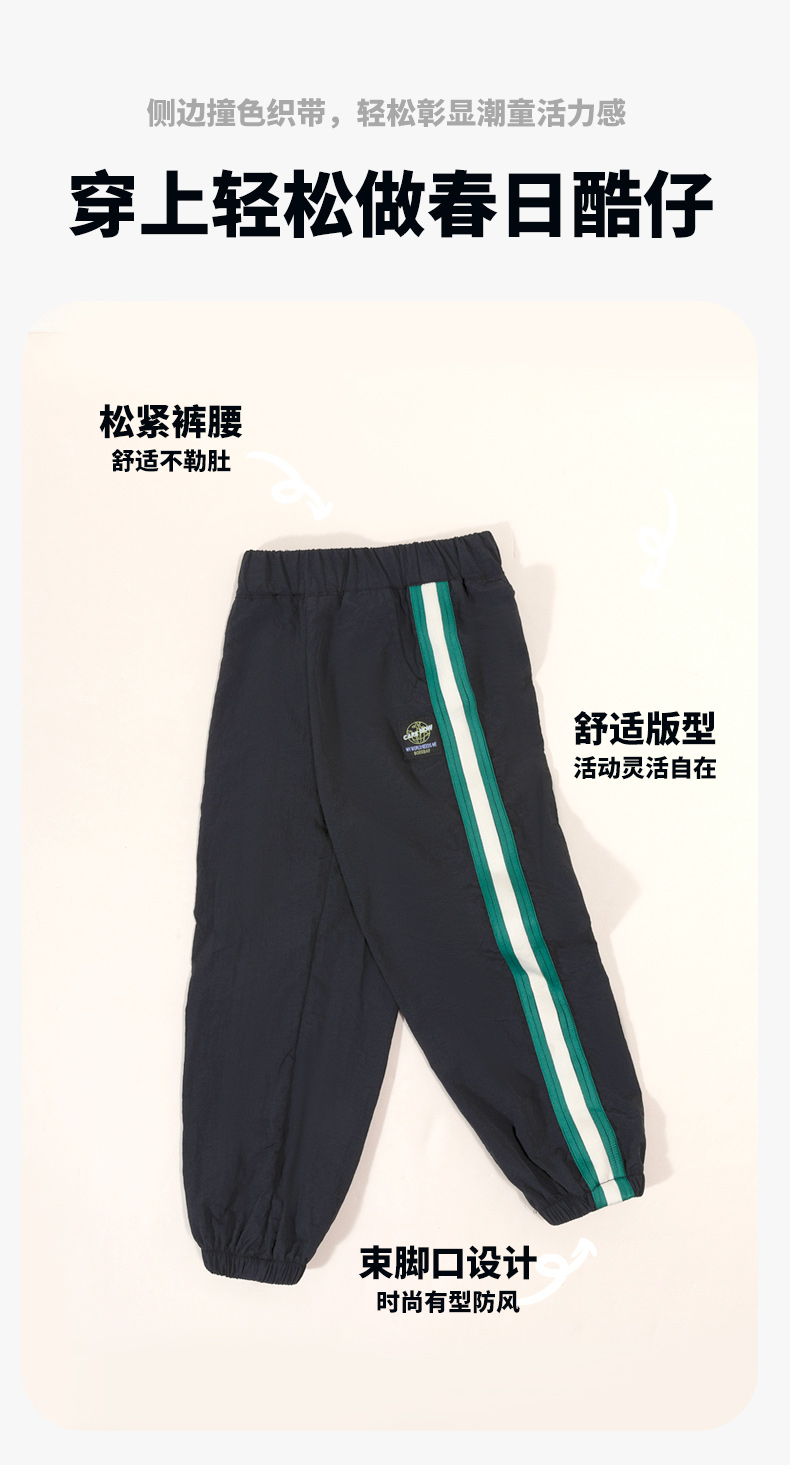 贝贝怡男童撞色拼接休闲长裤2024春秋运动风简约舒适潮流束脚长裤ZB1DK001