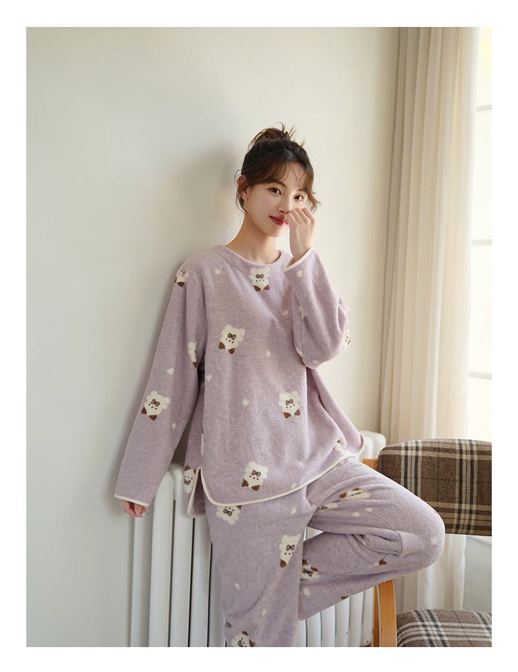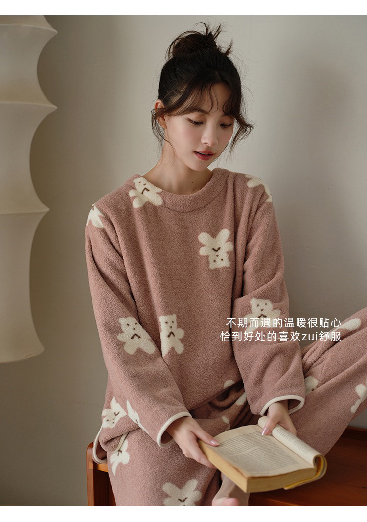 24年秋冬新款家居服套装女云朵绒软绵绵睡衣可外穿两件套