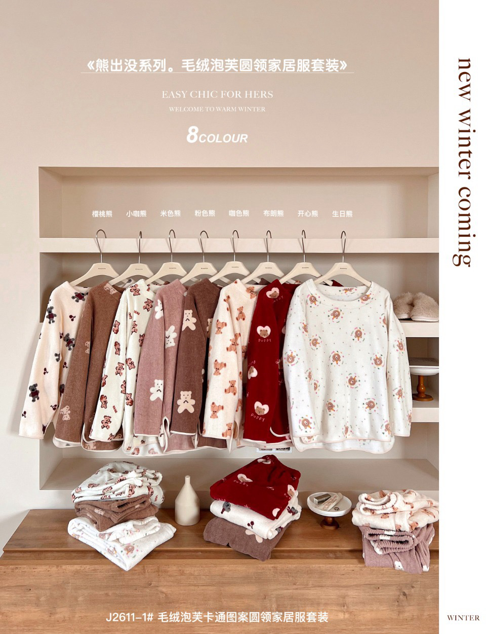 官网599!野兽家同款KITTY豹纹联名款可丽绒家居服套装 立领围巾领/撞色娃娃领 甜美可爱减龄温暖