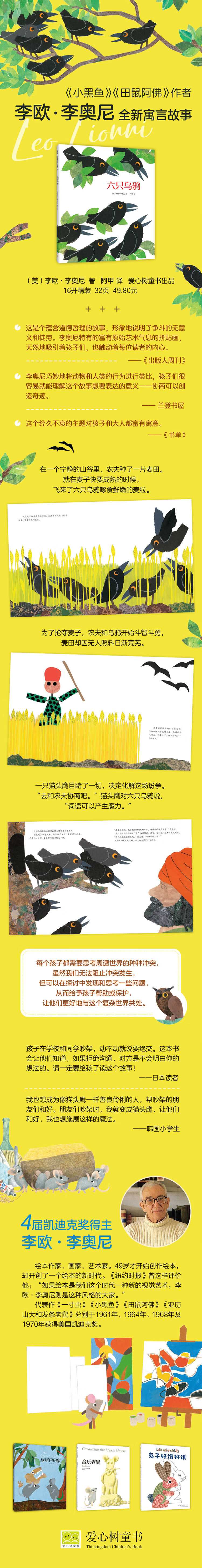 《田鼠阿佛》《小黑鱼》作者李欧;李奥尼用“农夫”和“乌鸦”这两个传统寓言中经常出现的角色,演绎新的故事。