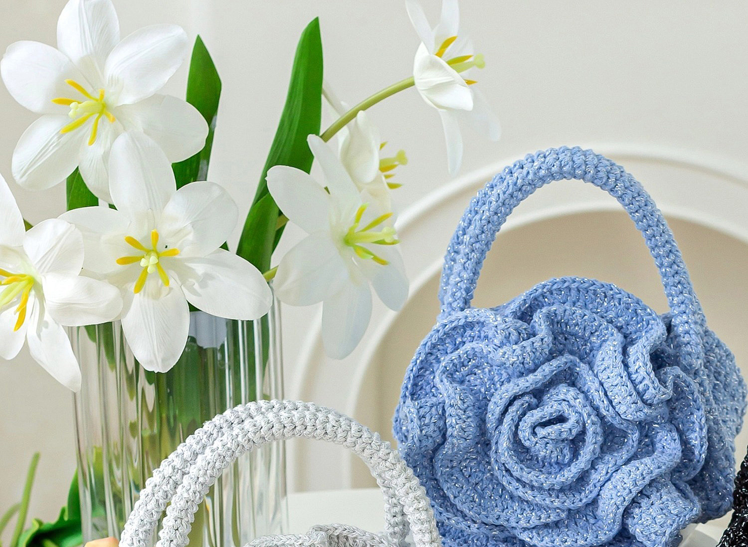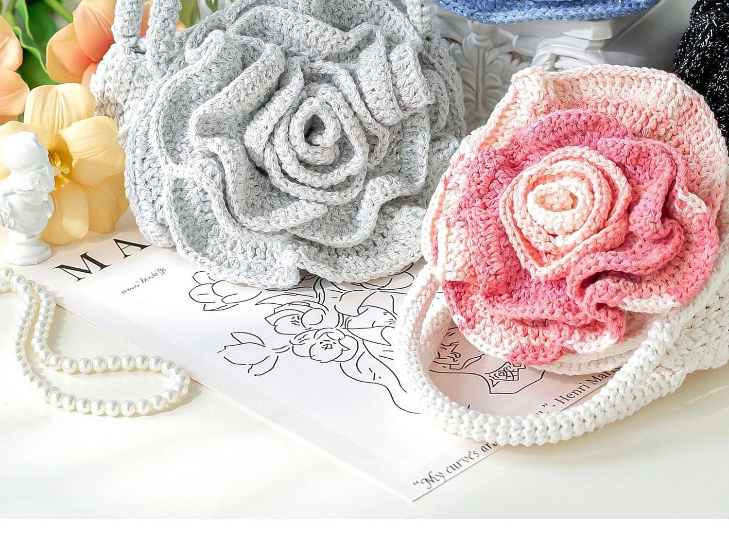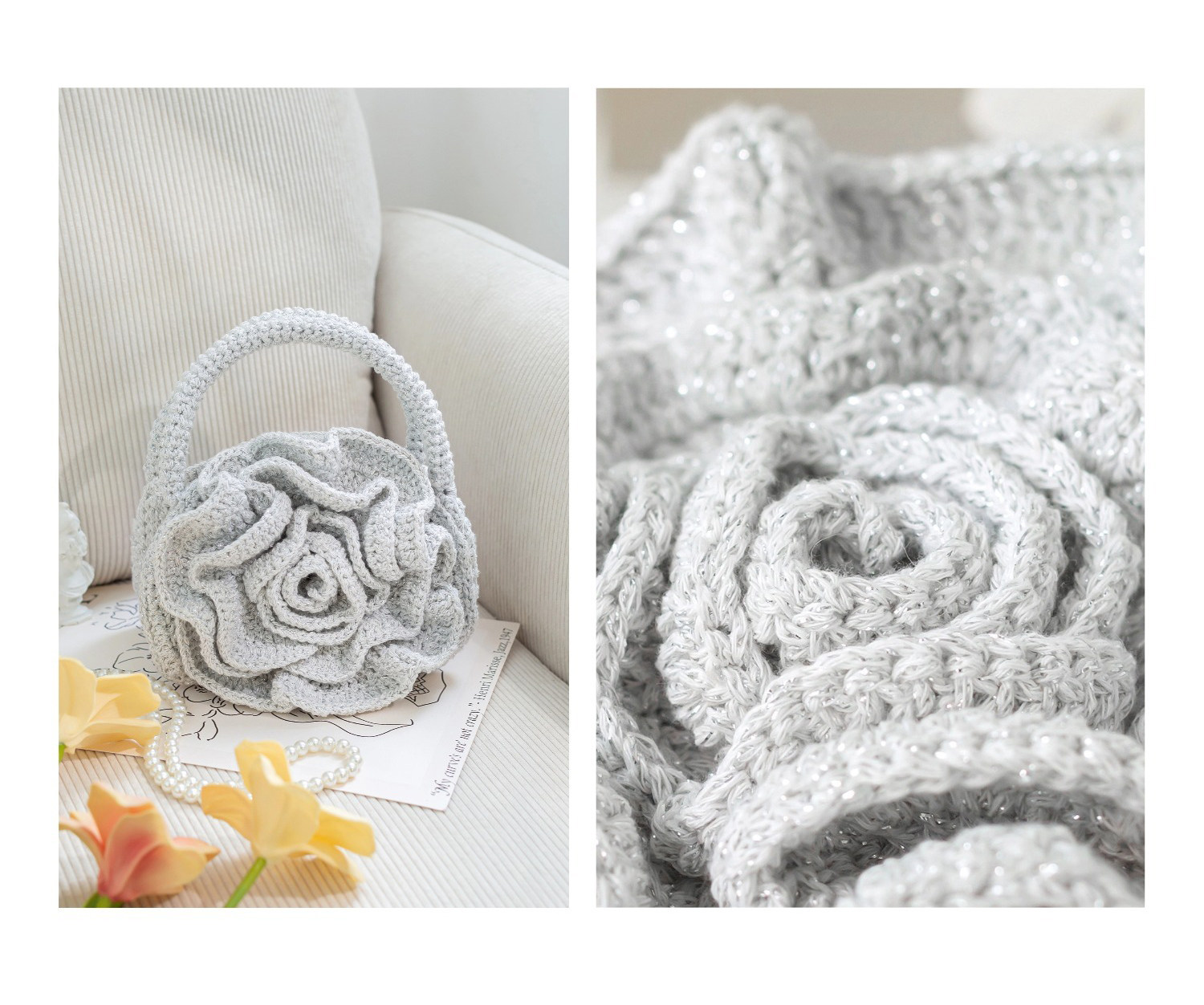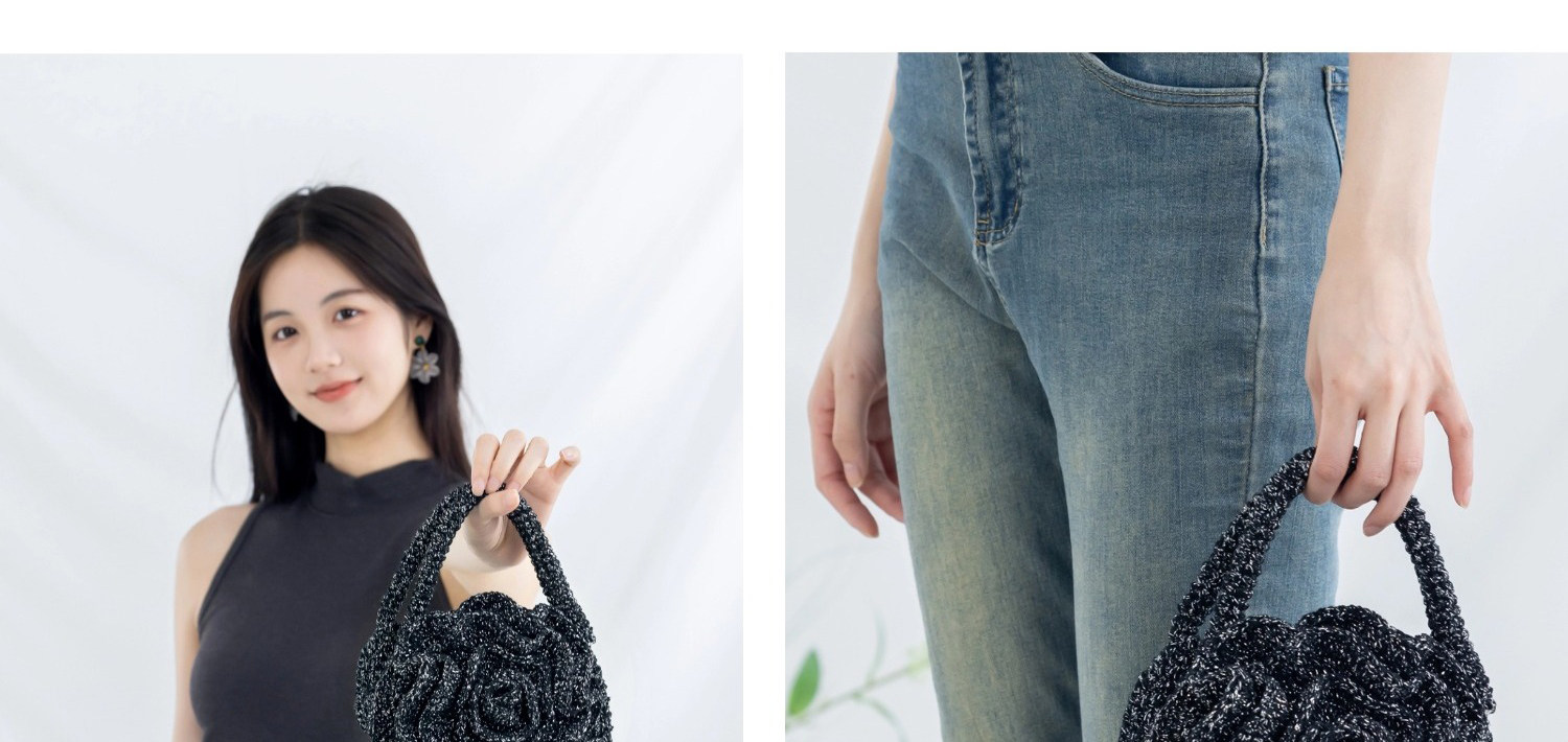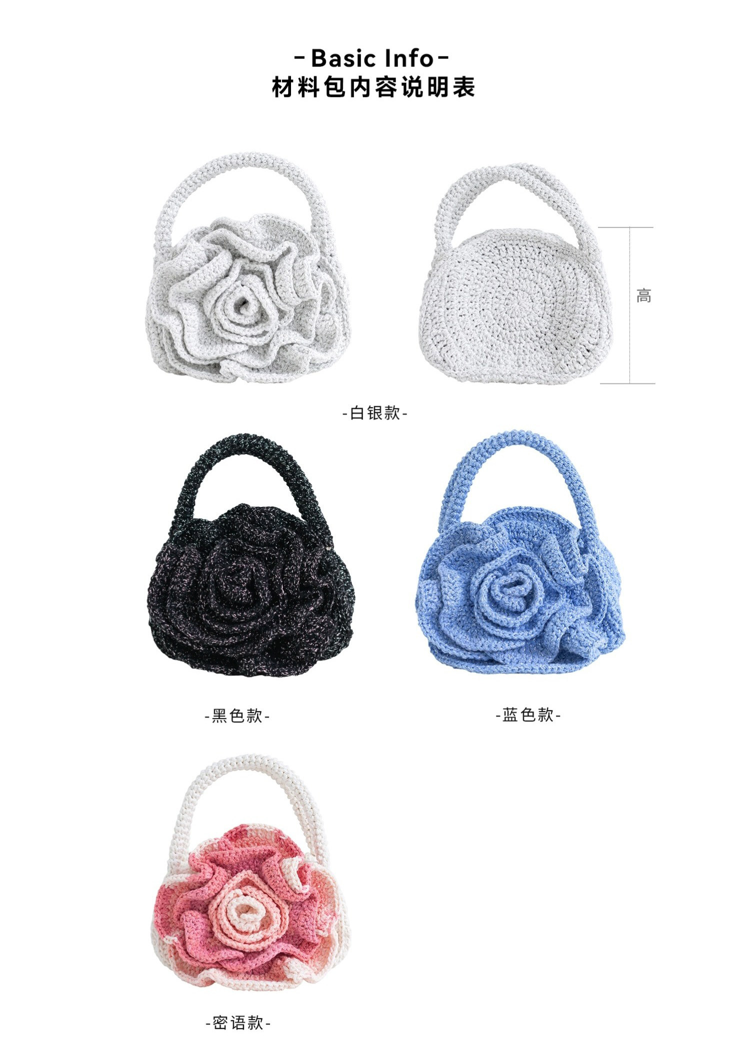 苏苏姐家玫瑰手拎包手工diy编织包包钩针烁光毛线团材料包打发时间