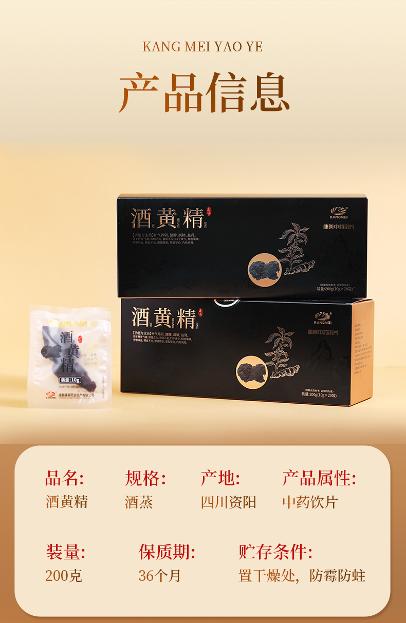 康美酒黄精200g/盒(10g*20袋)酒制蒸晒可即食黄精