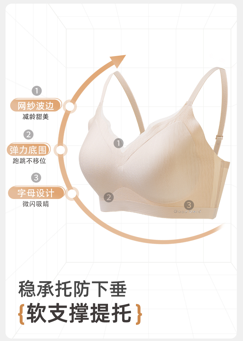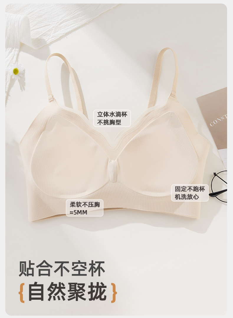雅黛俪女士背心式无痕内衣7A抑菌舒适透气美背式文胸罩