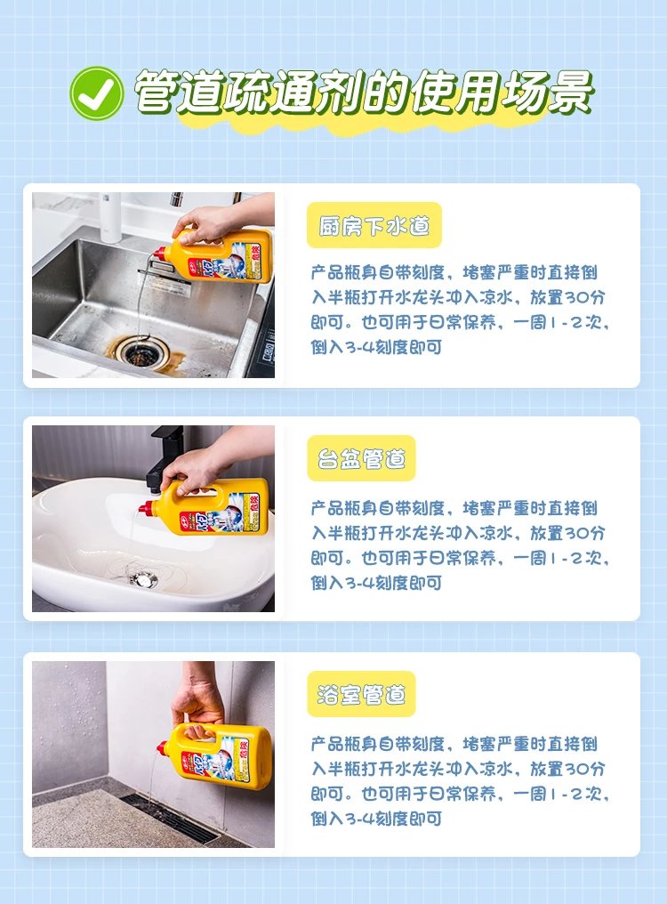 一瓶搞定全下水道场景,时刻保持洁净清新,不管是卫生间还是厨房,哪里需要清洁&疏通就倒哪里~