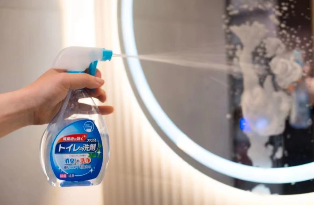 净芬卫浴清洁喷雾泡沫非常绵密,有效吸附分解顽固污渍,能够快速去除污渍