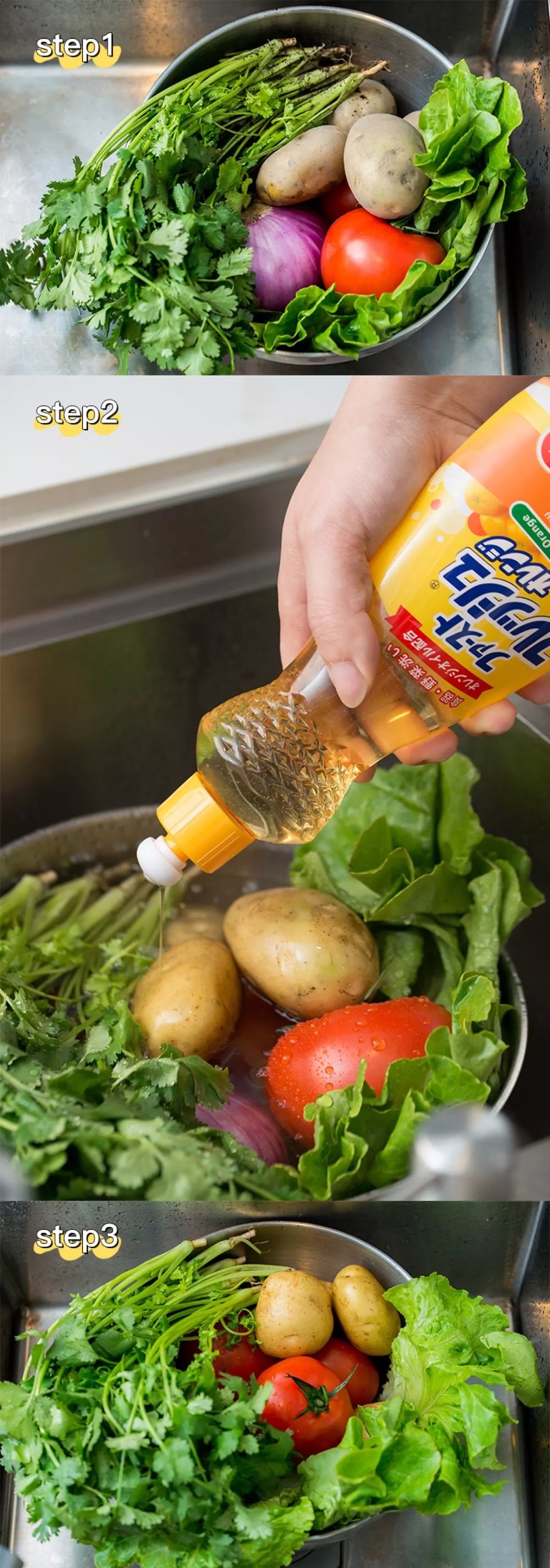 各种水果蔬菜上都可能有农残留,挤入一滴净芬洗洁精浸泡一会儿,仔细清洗掉泡沫,洗完后果蔬干干净净,全家人都可放心食用