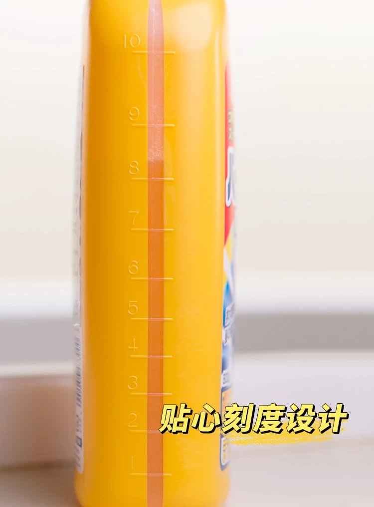净芬管道疏通剂瓶身有清晰的刻度,如果遇到堵塞的情况,倒入半瓶或者是全部倒入。如果是日常维护,3-4刻度即可,1瓶盖大约是2-3刻度左右,超省的~