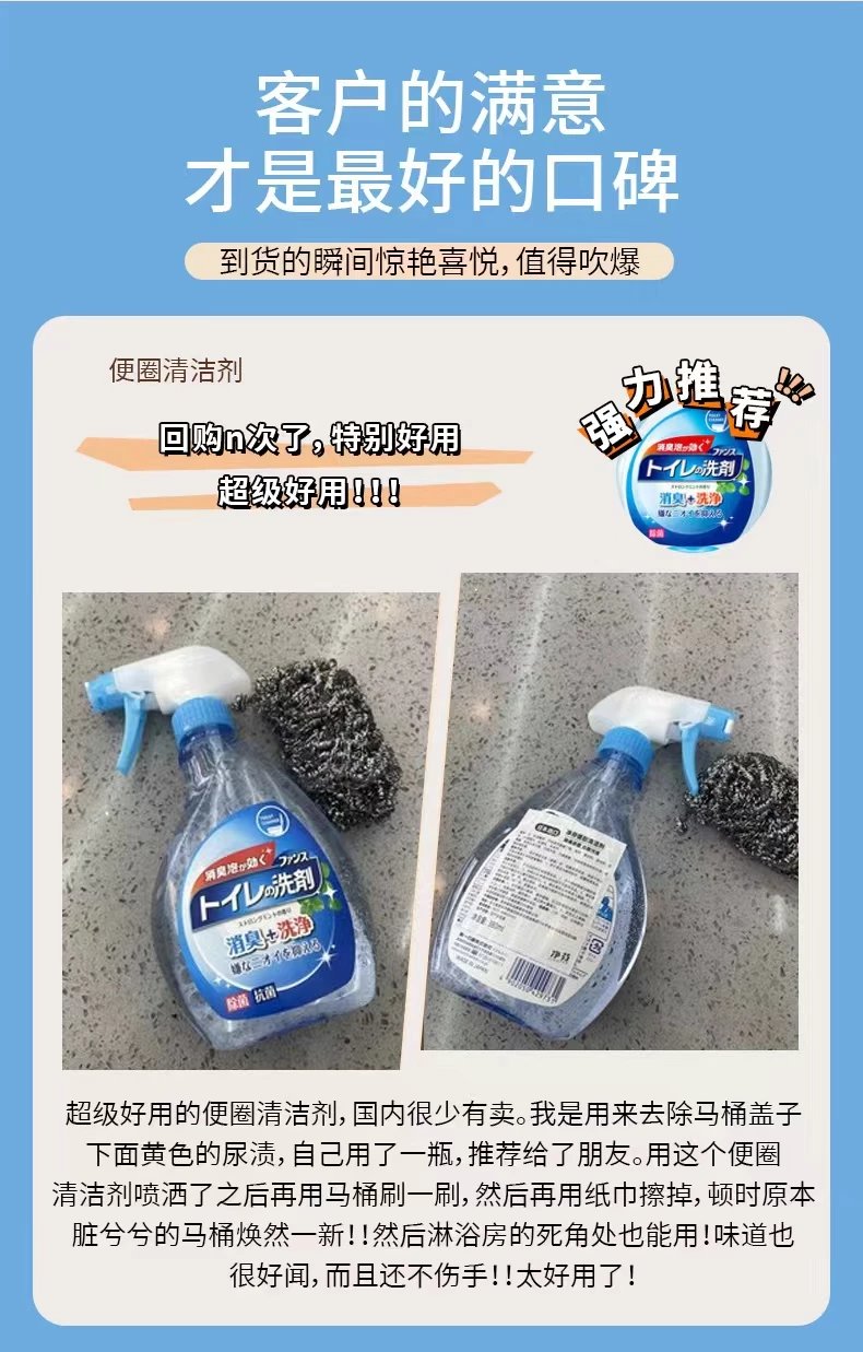 什么尿渍黄渍通通给我消失还完全不会伤手哦,一种非常清新自然的薄荷香,喷完整个马桶都是香香的~