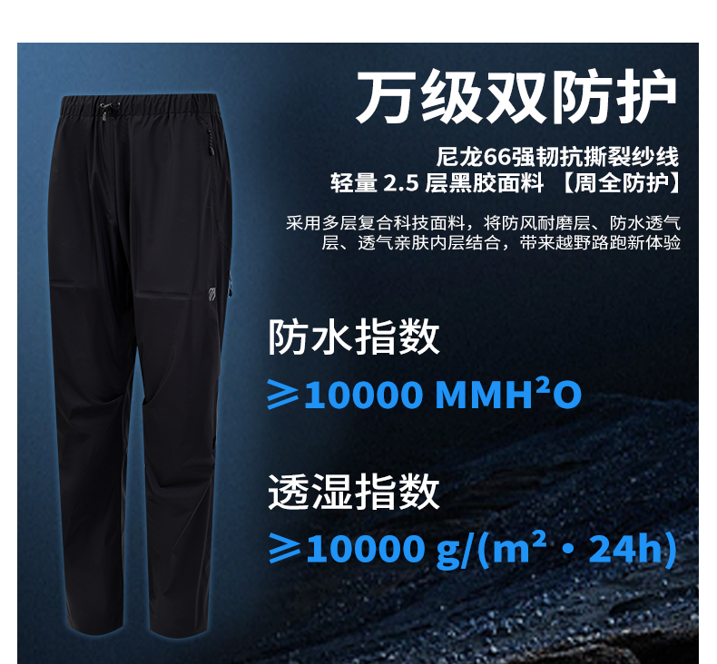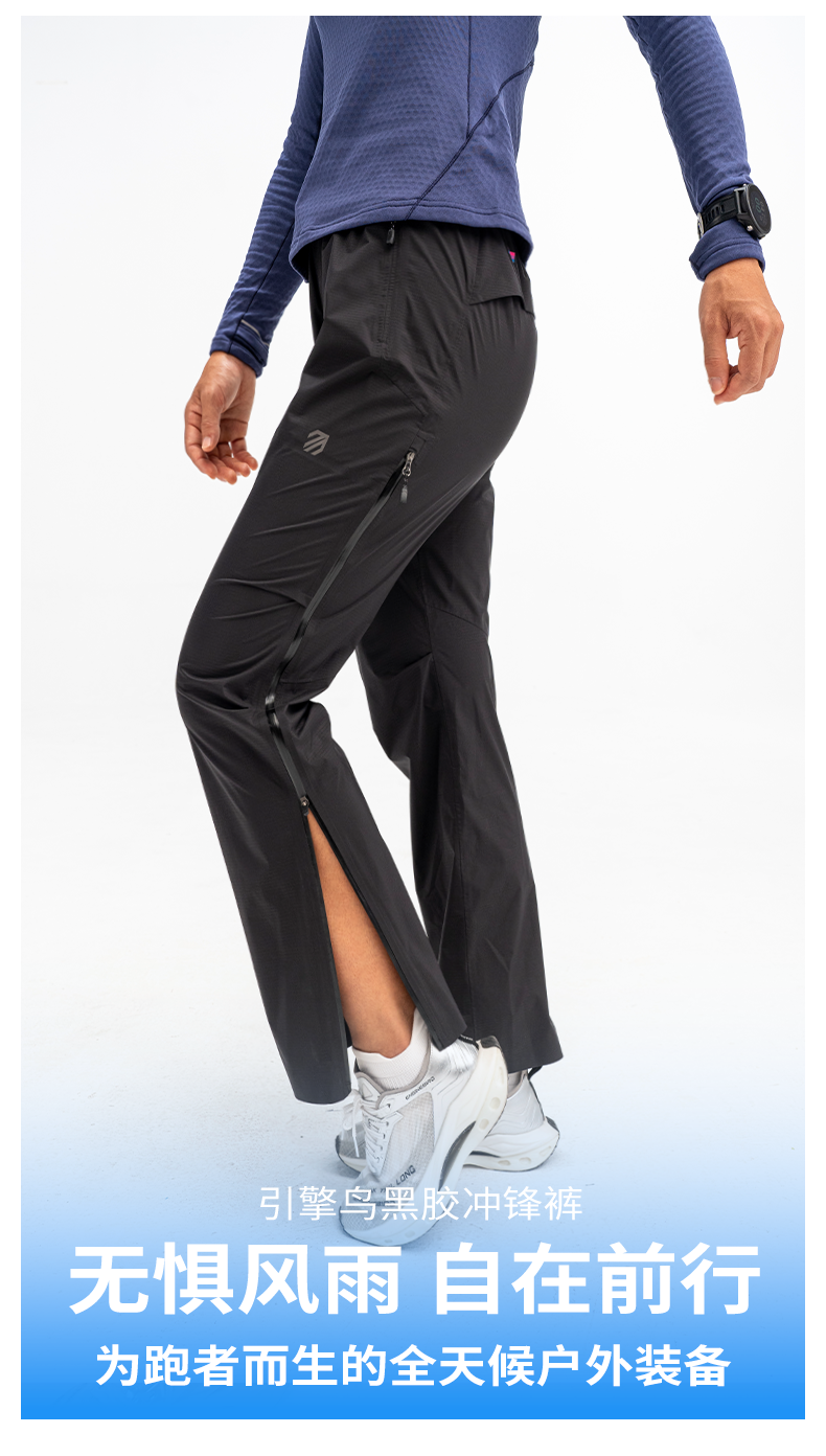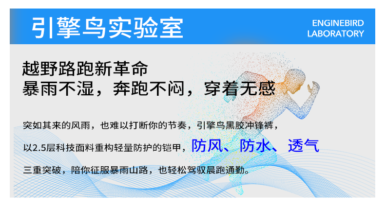 引擎鸟男女同款黑胶冲锋裤越野跑防风防水速干透气长裤