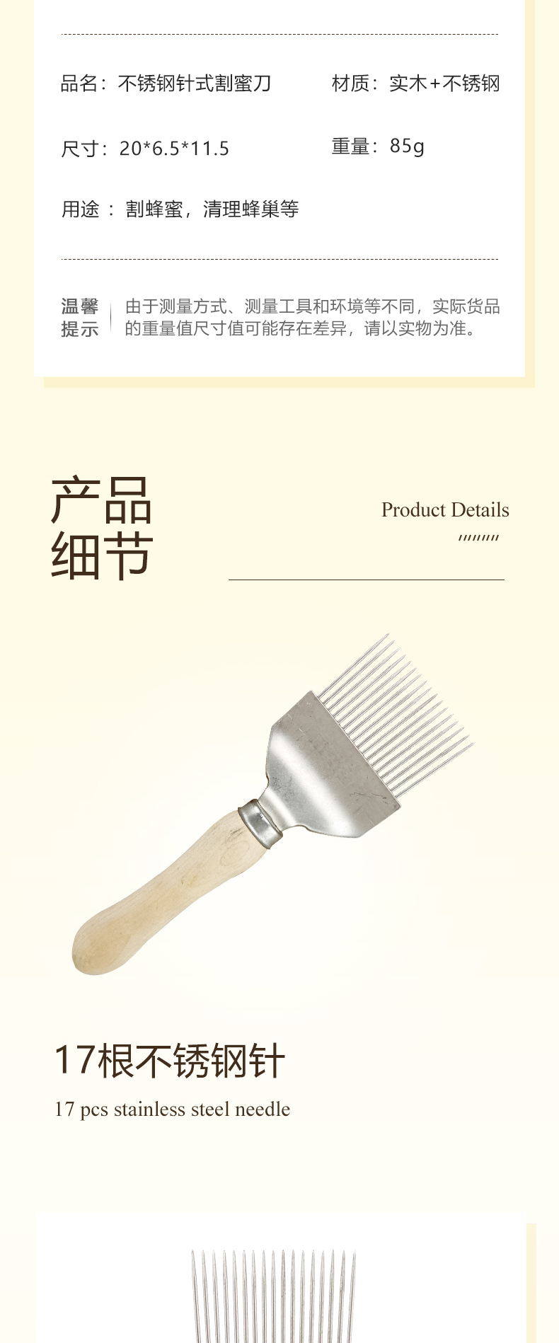 【正品保证】木柄不锈钢割蜜叉割蜜刀取蜜专用养蜂工具大全巢础蜂盖起刮蜂箱