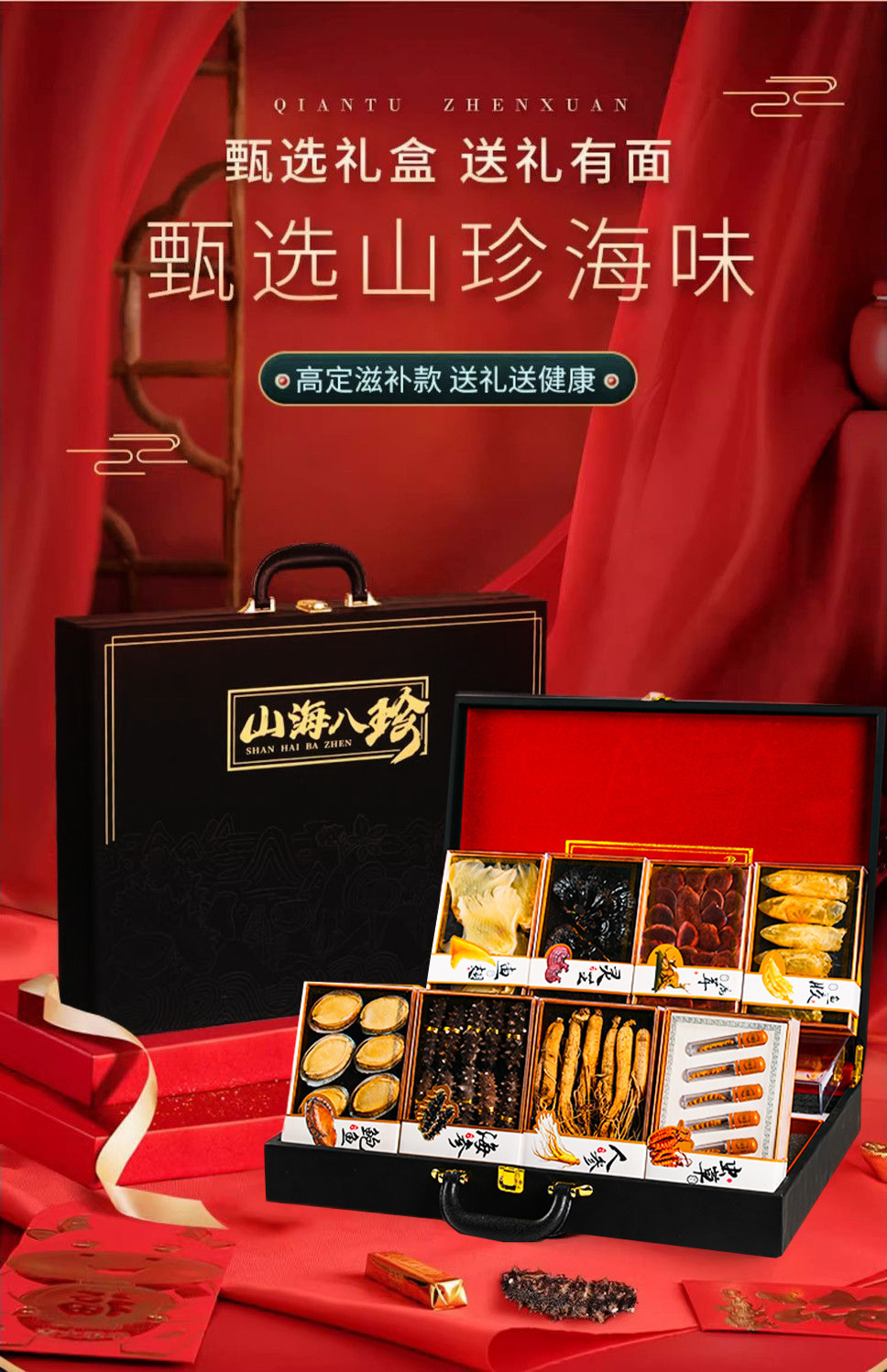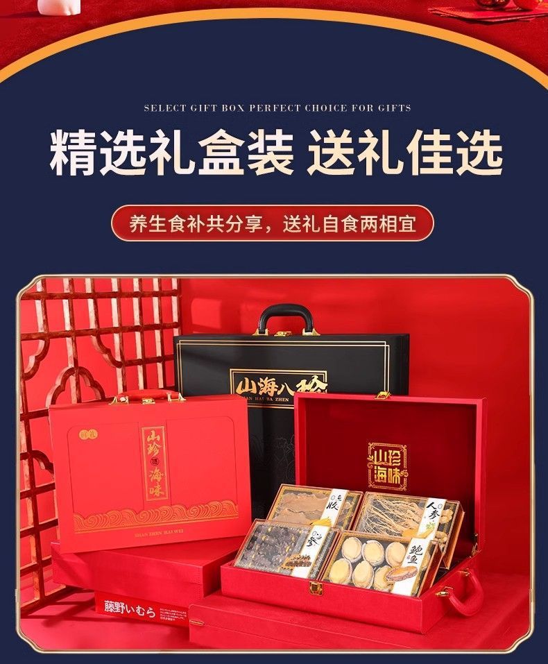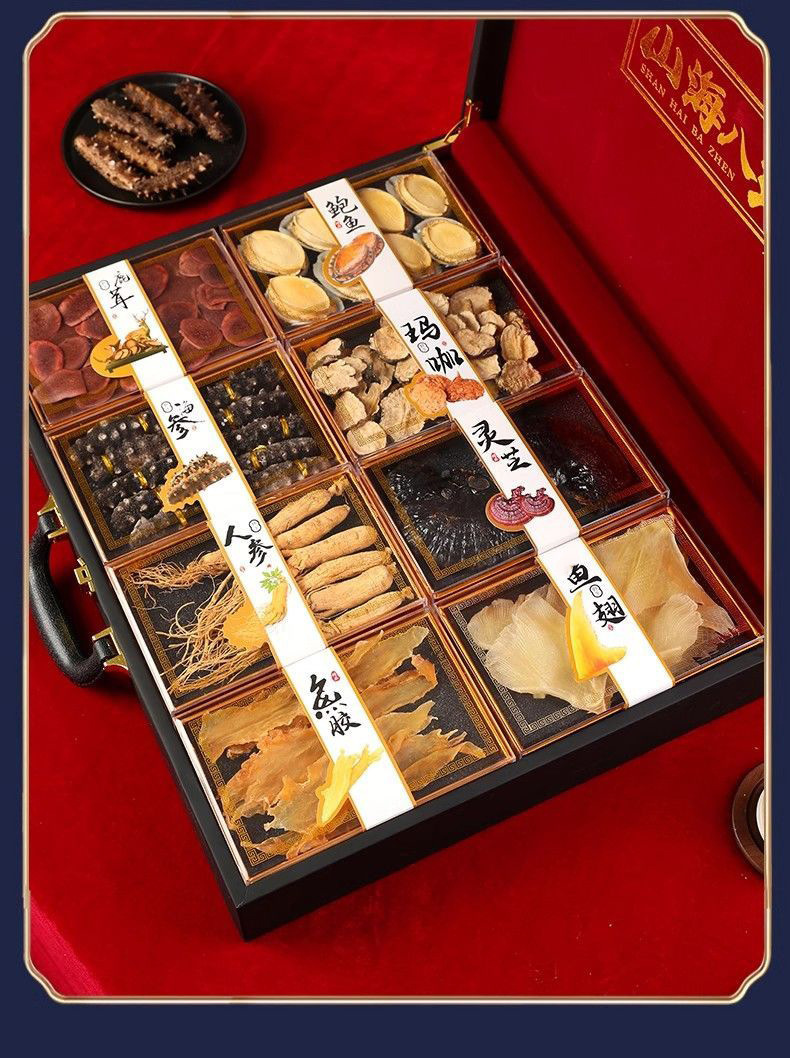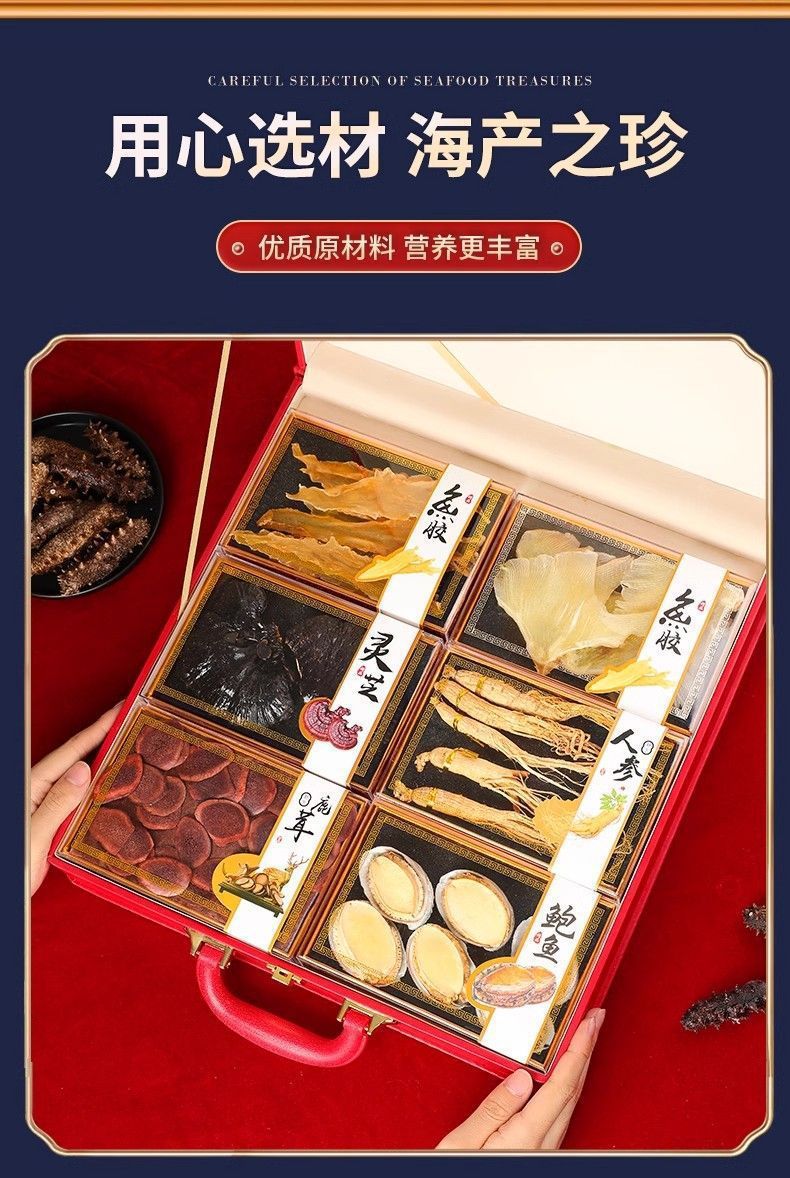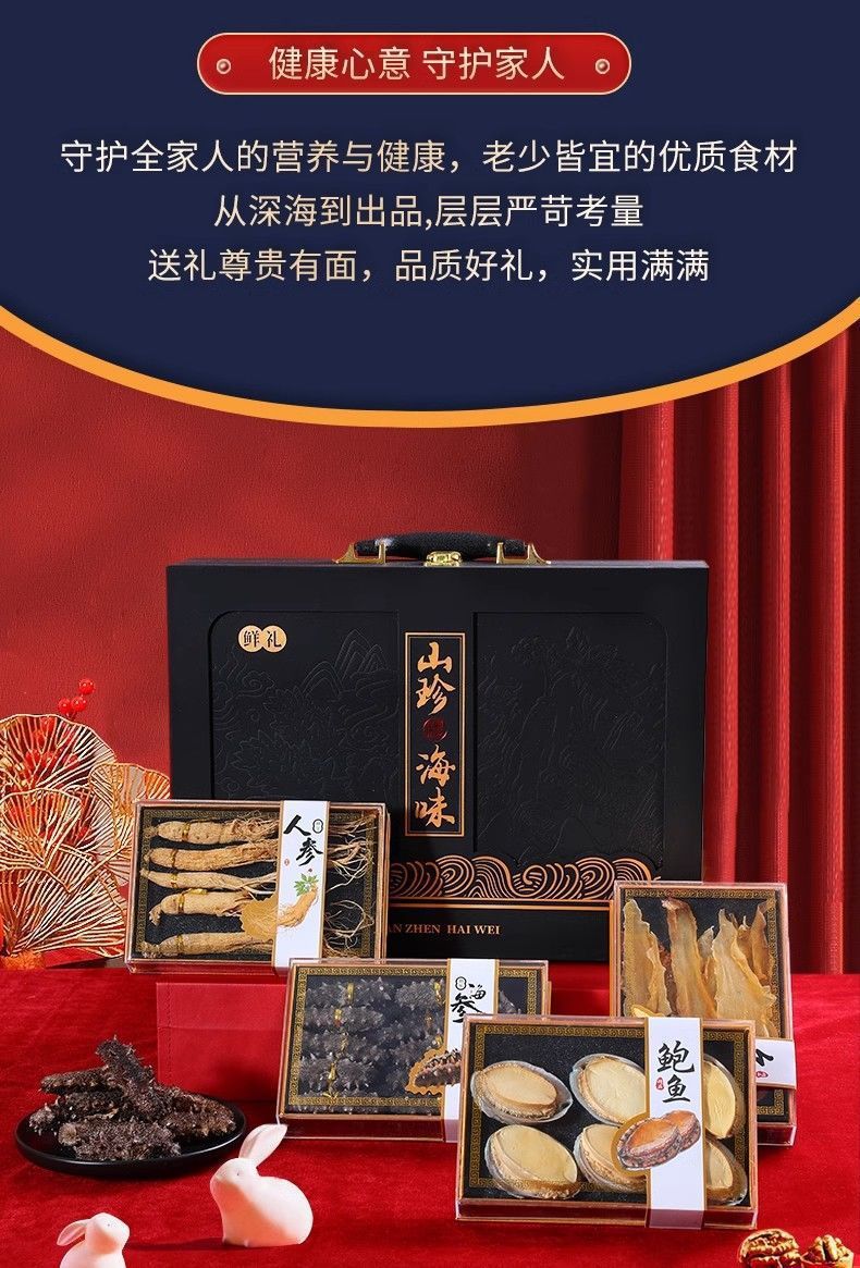 【优质原材料❗️甄选礼盒送礼有面】人参灵芝虫草高级滋补送礼中秋海参鲍鱼海鲜干货山珍海味礼盒装。jc