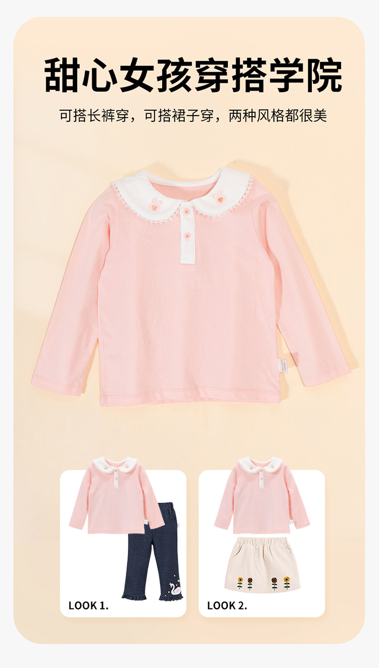 贝贝怡女童卫衣秋装2024新款儿童洋气衣服女孩长袖t恤春秋款上衣ZB3DS007