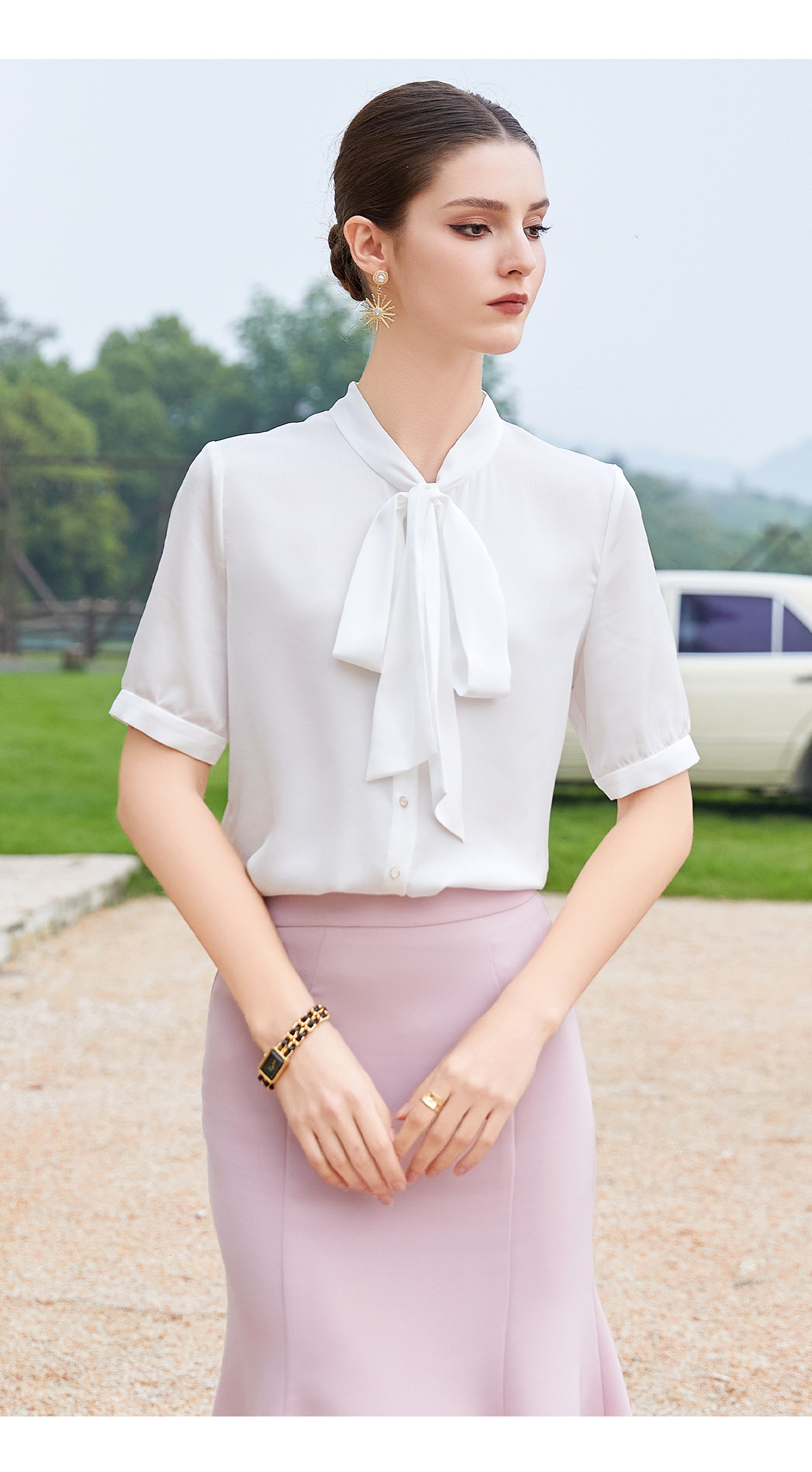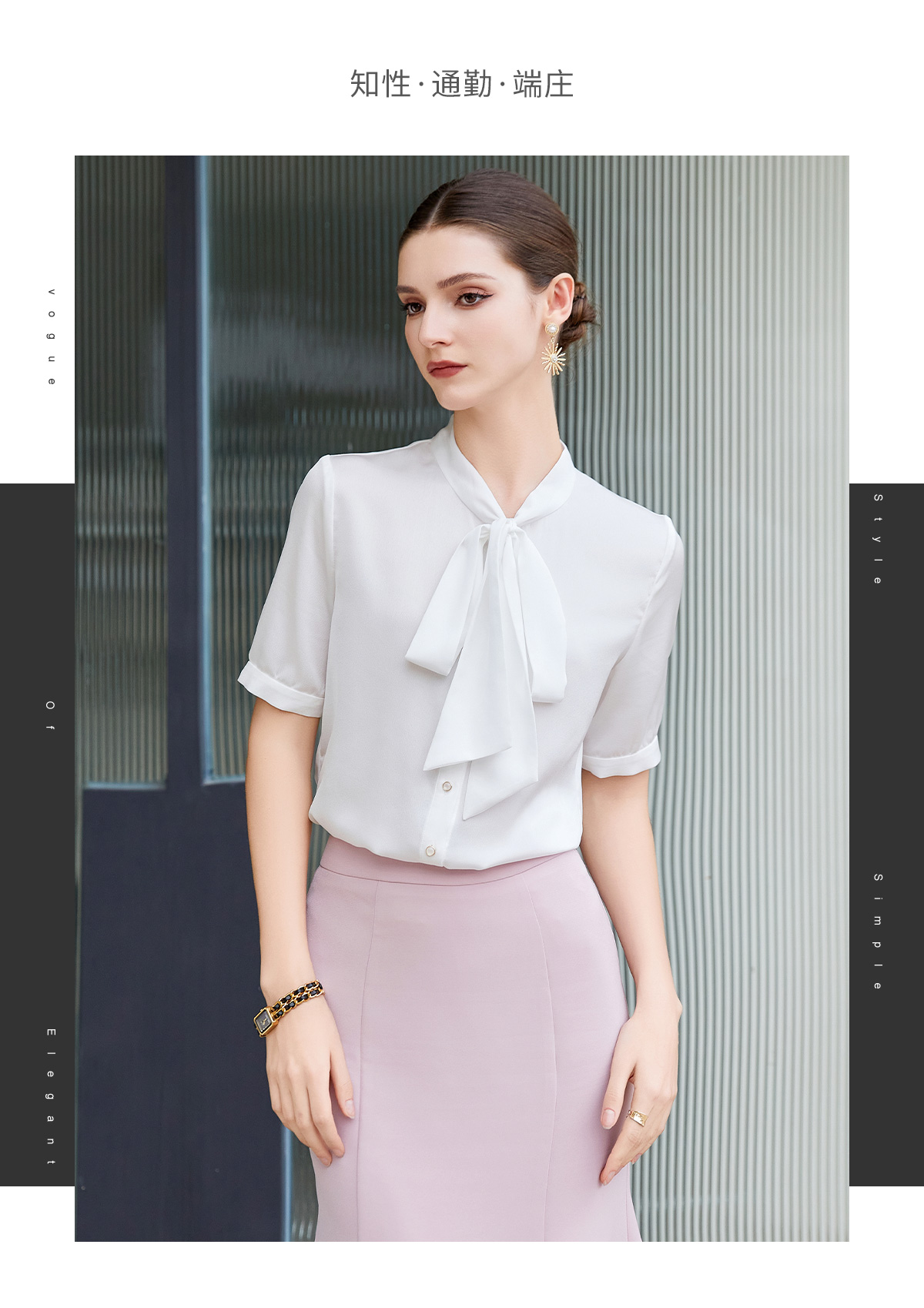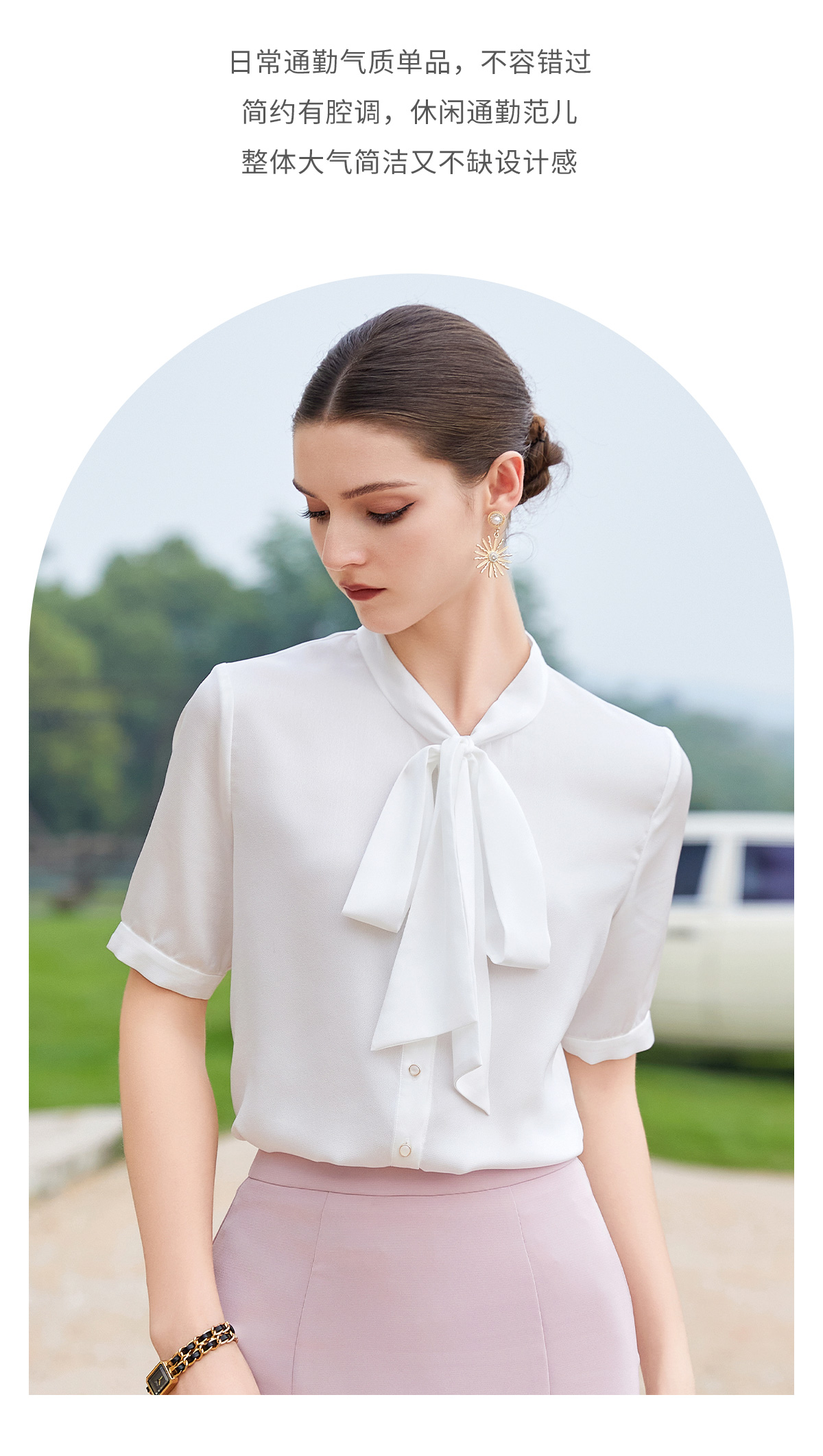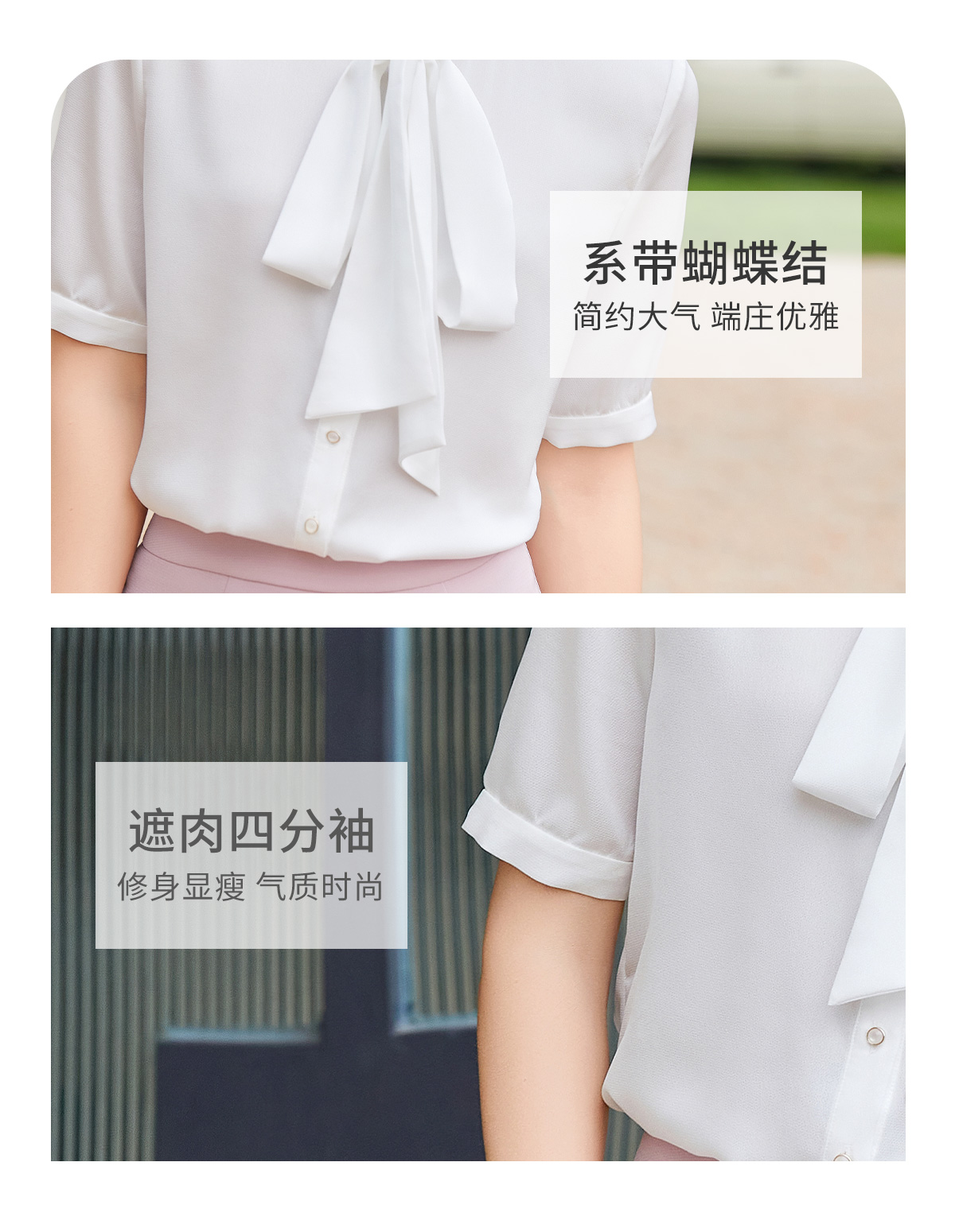 AD时尚减龄雪纺短袖女2024新款白色衬衫气质上衣职业装工装套装