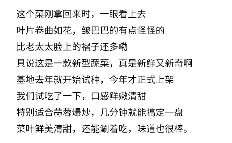 北京本地新鲜皱叶菜 特色蔬菜 清新鲜嫩 柔和清甜 适合清炒火锅 300g