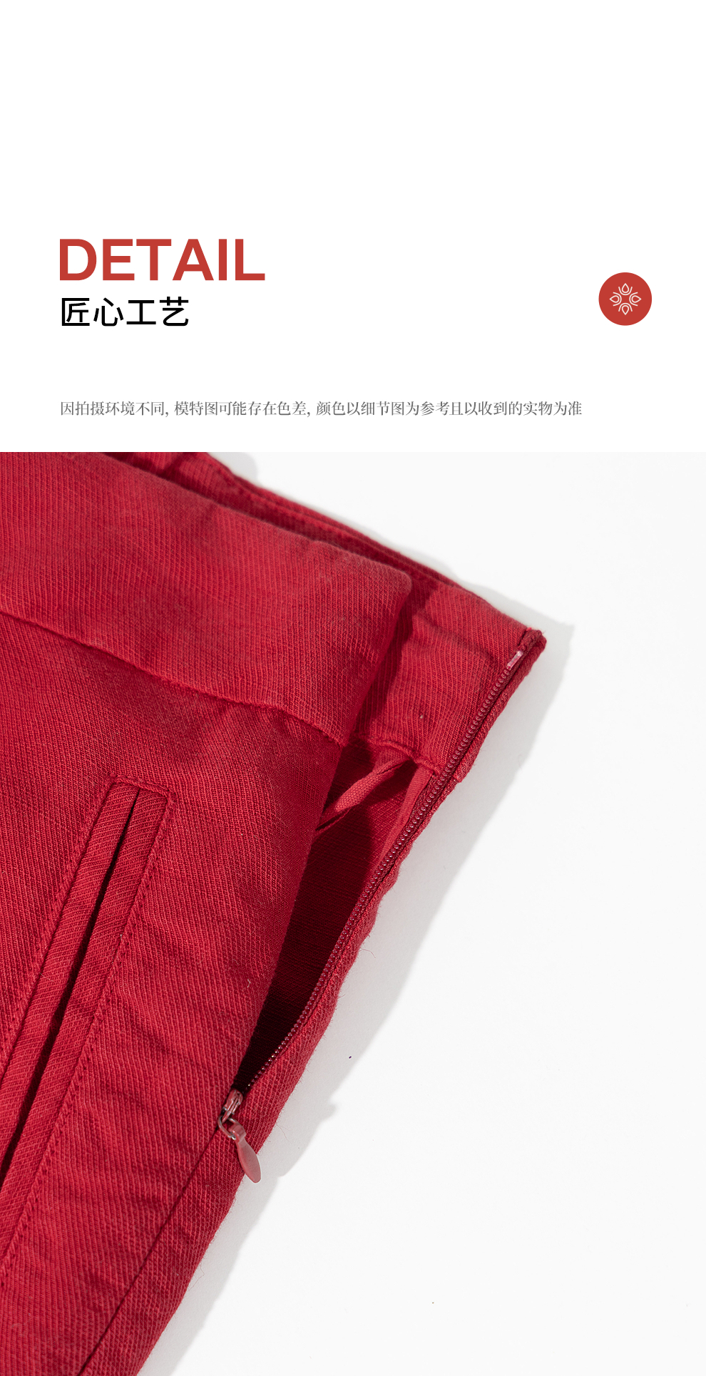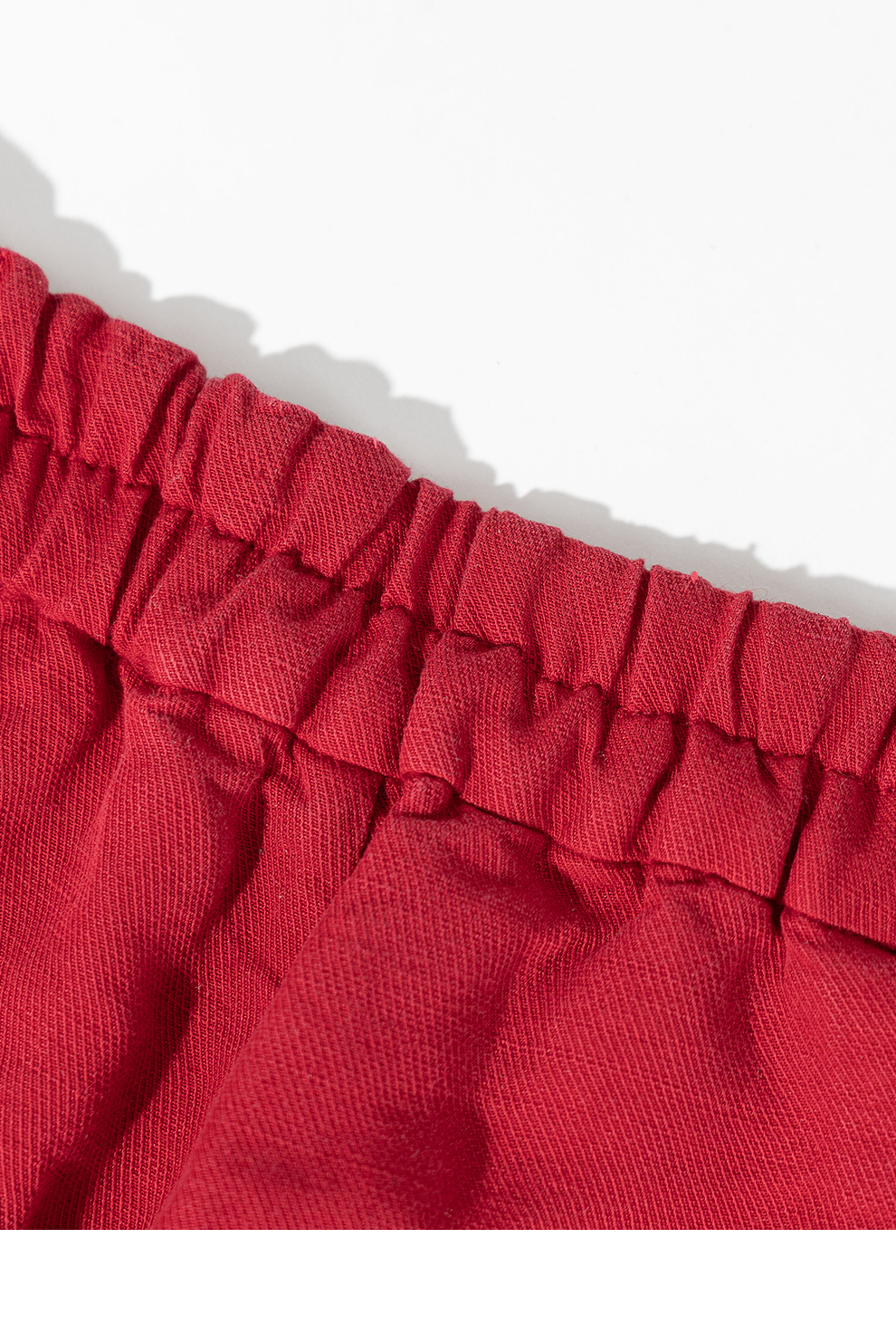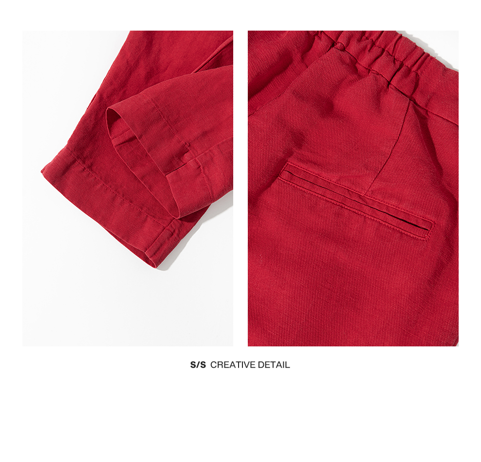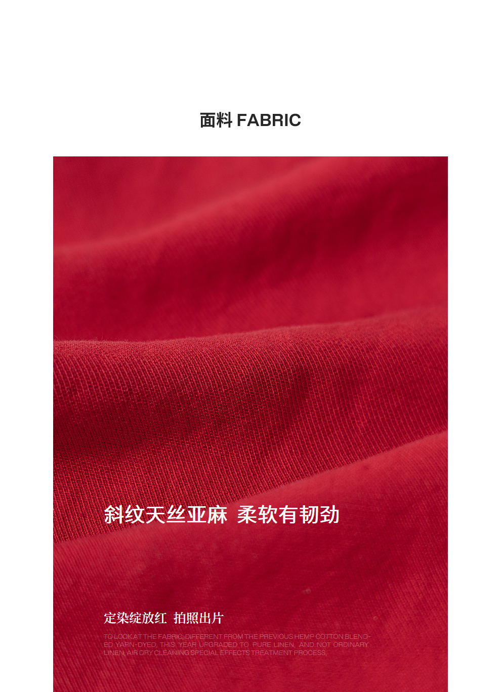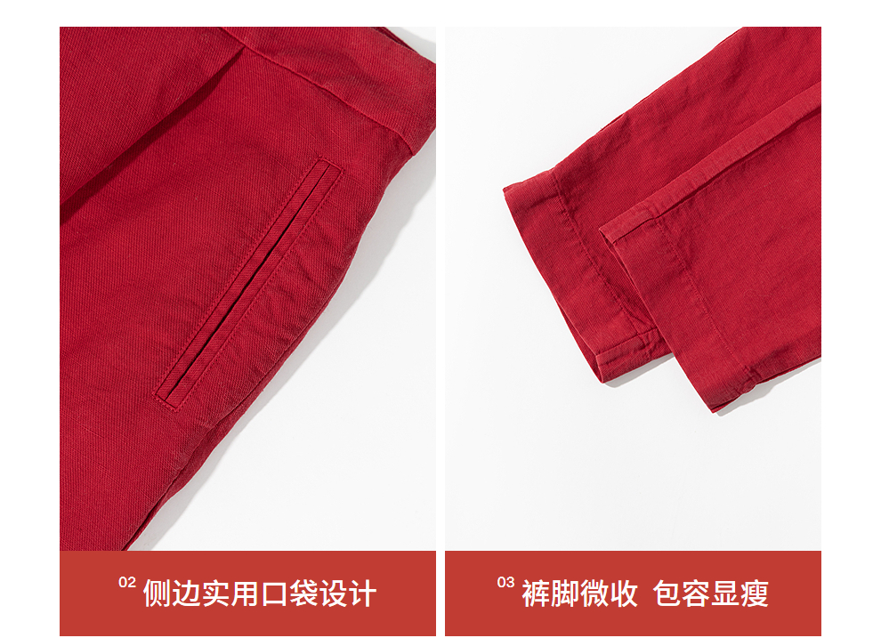 绽放072朵/2025年春季定染红色天丝亚麻斜纹显瘦萝卜裤收脚长裤
