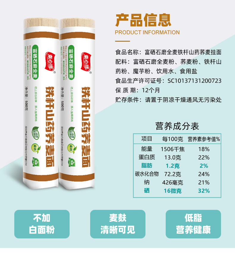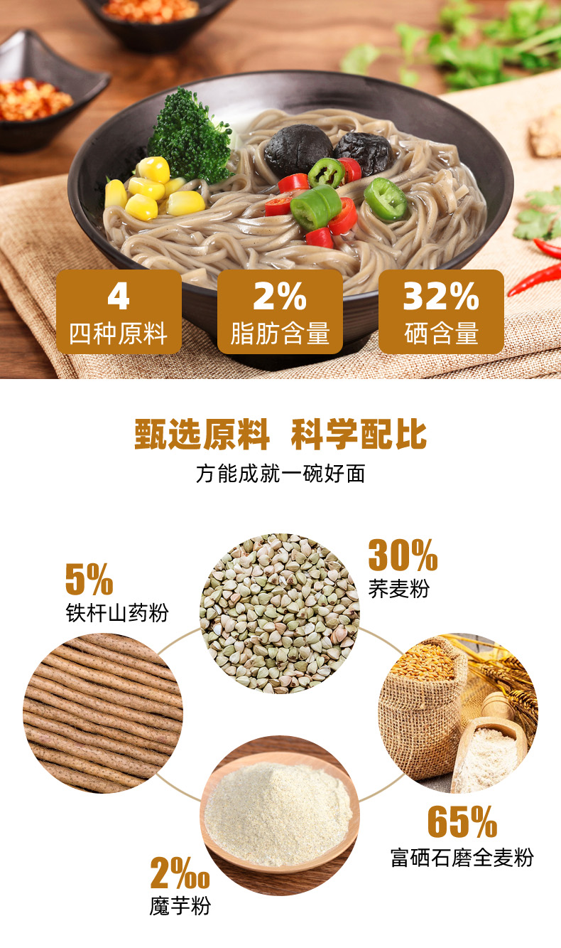 铁杆山药荞麦挂面 石磨全麦 高饱腹营养代餐早餐面条
