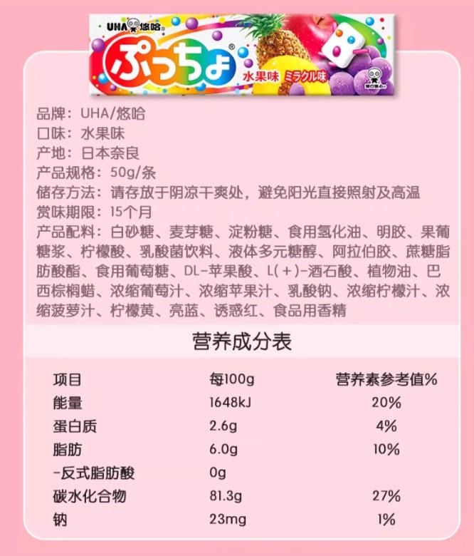 UHA悠哈普超 水果味夹心软糖(条糖)50g