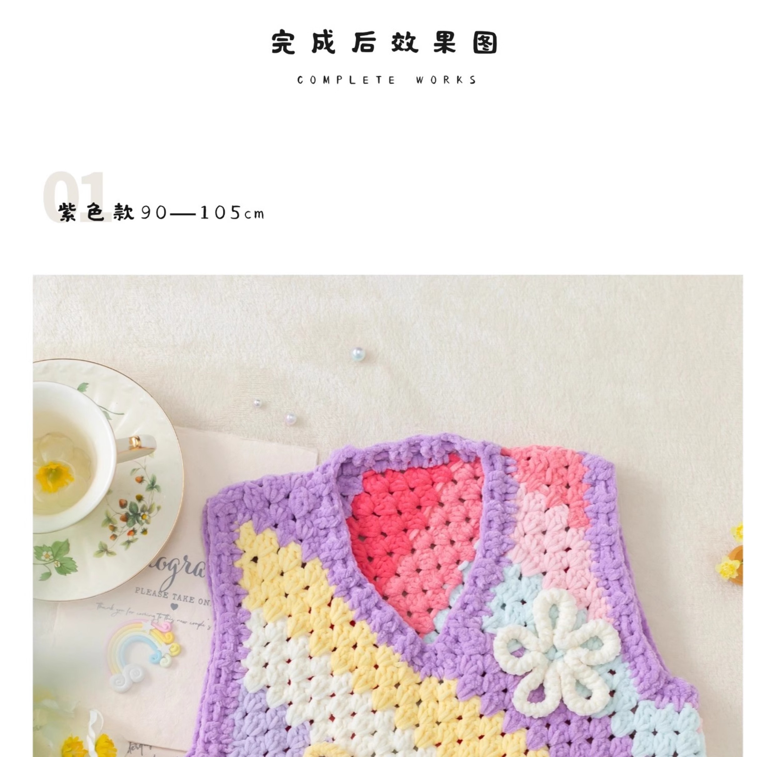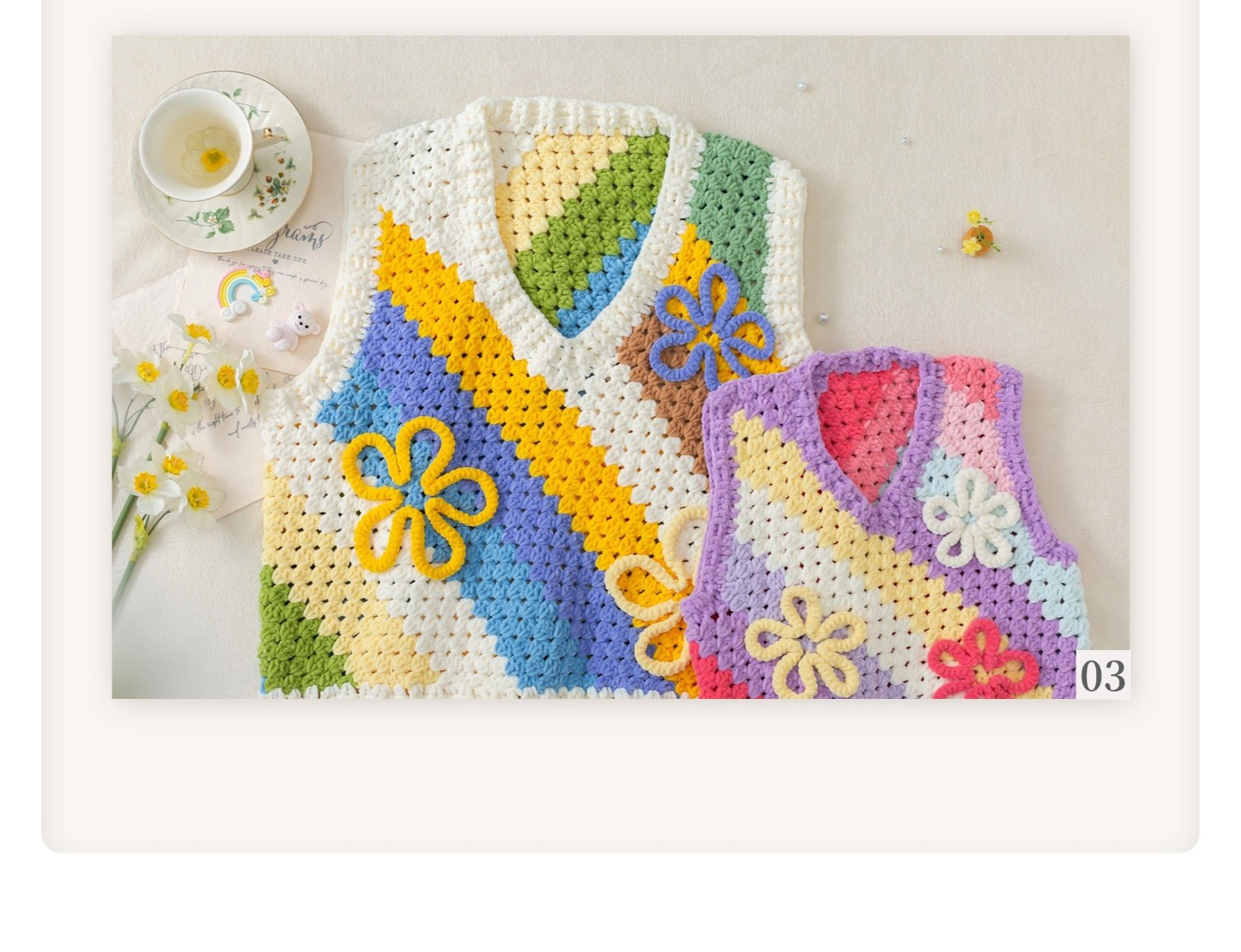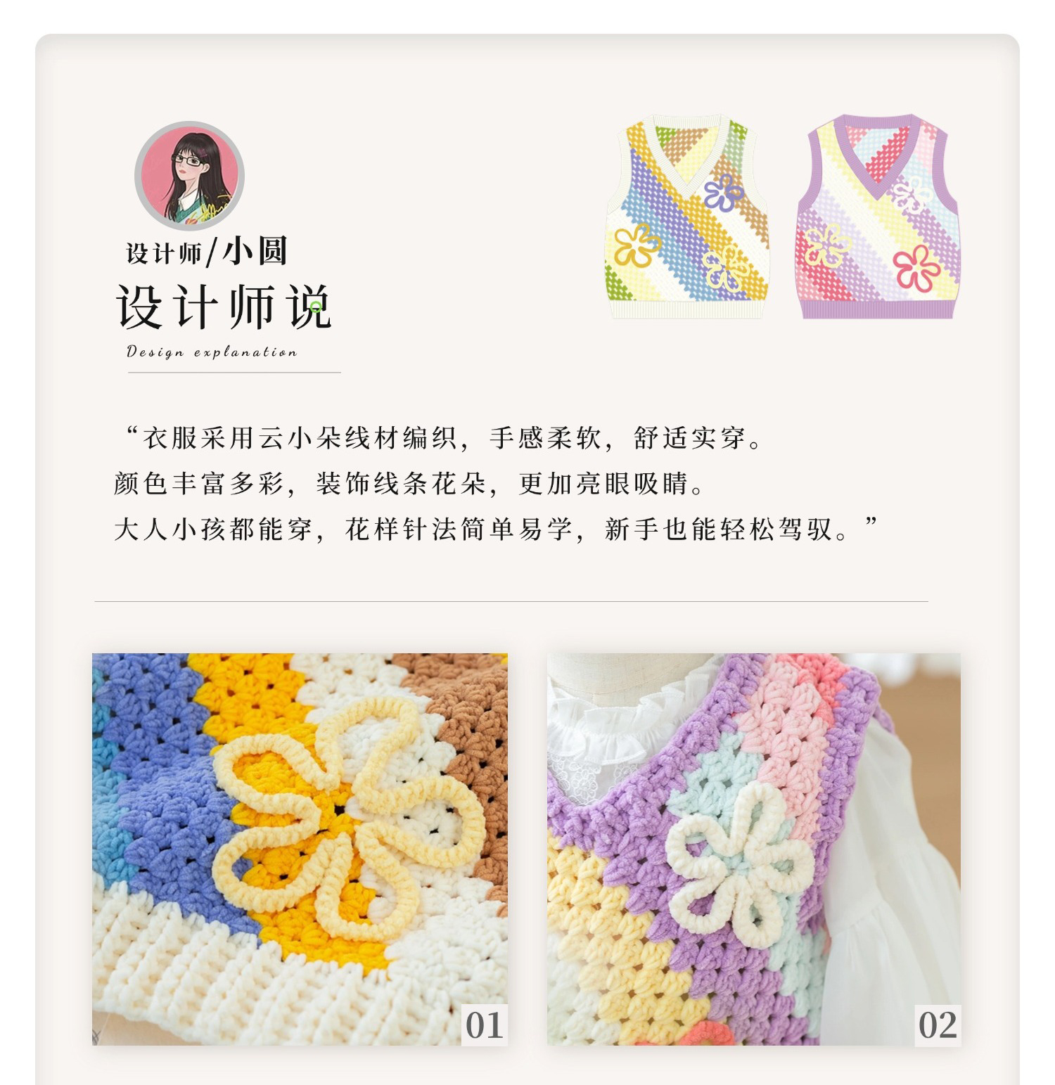苏苏姐家彩虹花朵马甲手工diy编织钩针毛线团自制亲子材料包