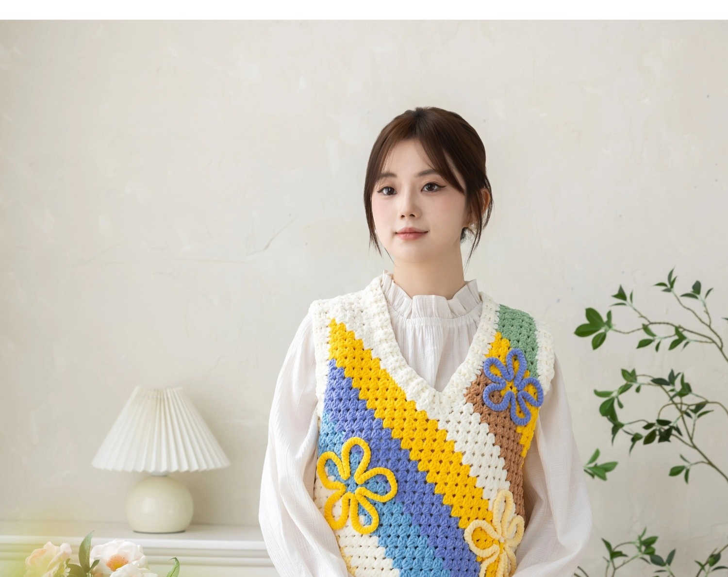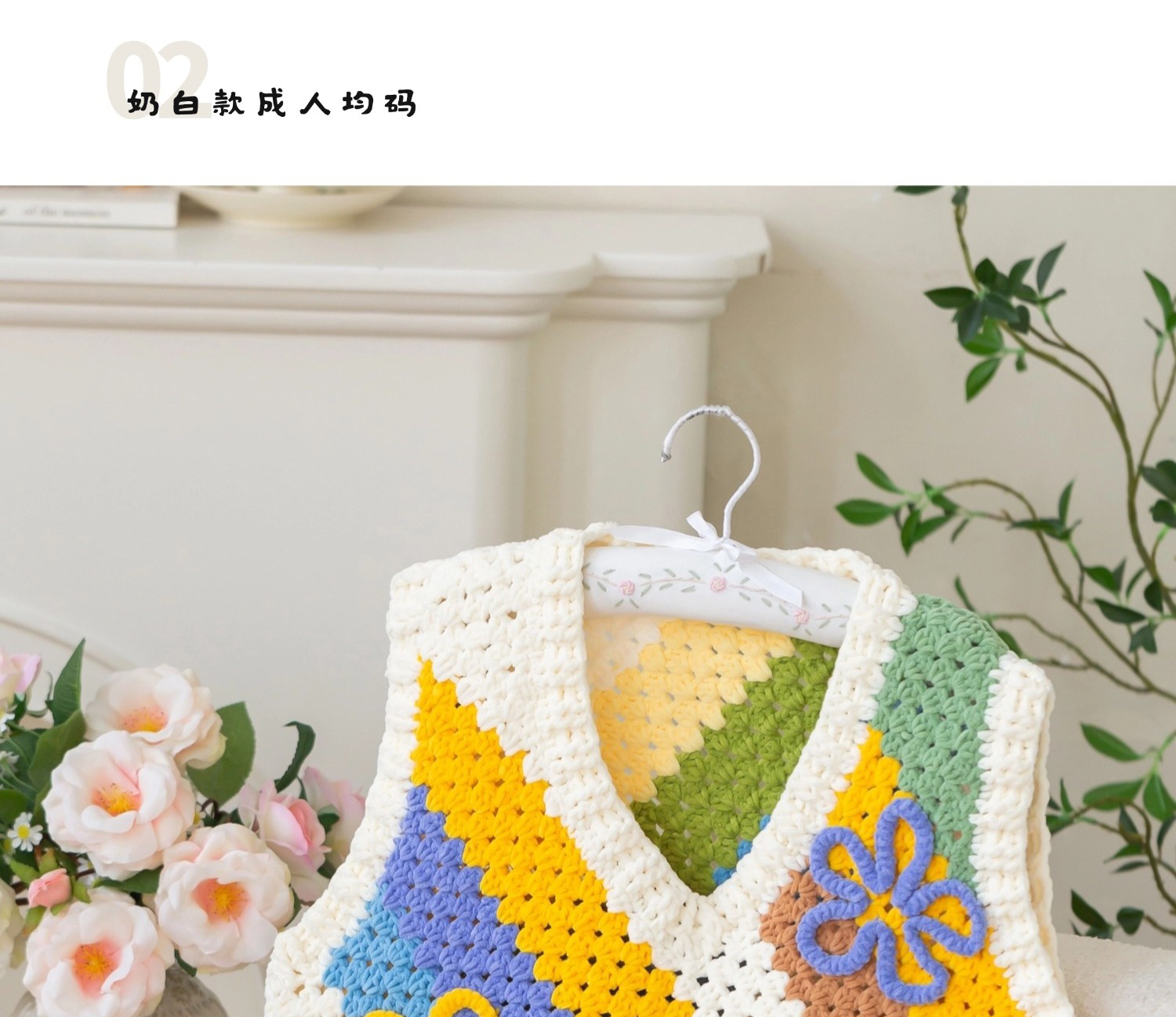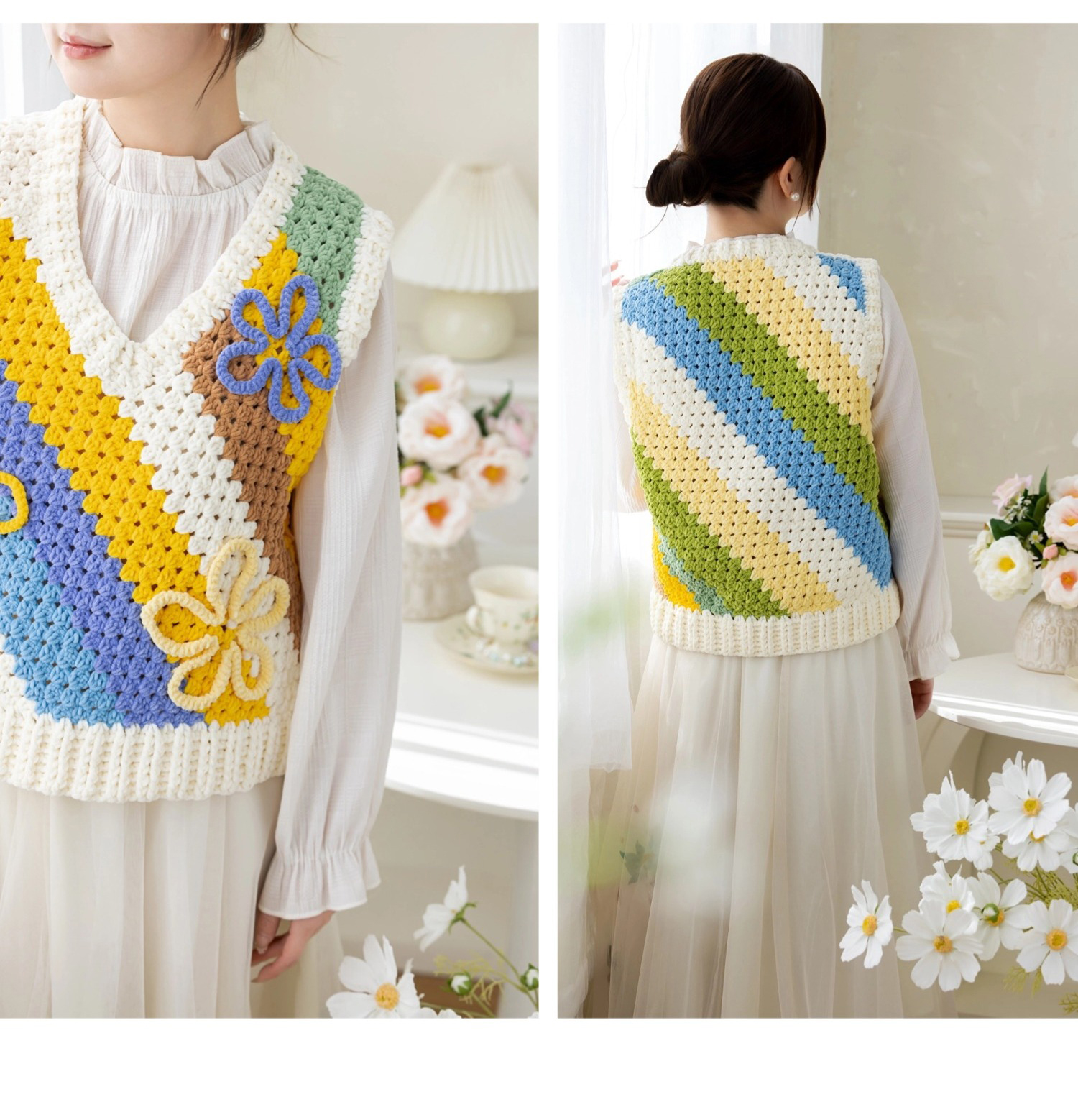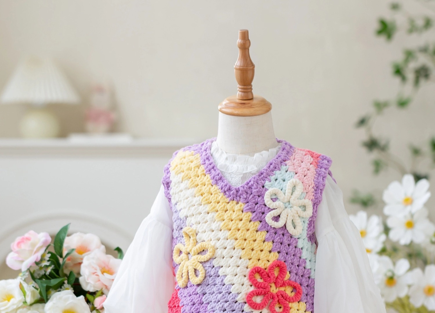 苏苏姐家彩虹花朵马甲手工diy编织钩针毛线团自制亲子材料包