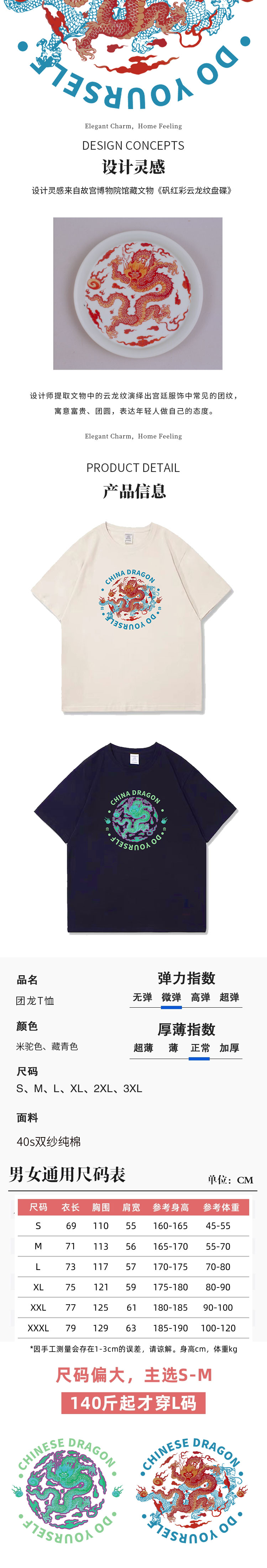 【宫里T恤】团龙T恤 米驼色 藏青色