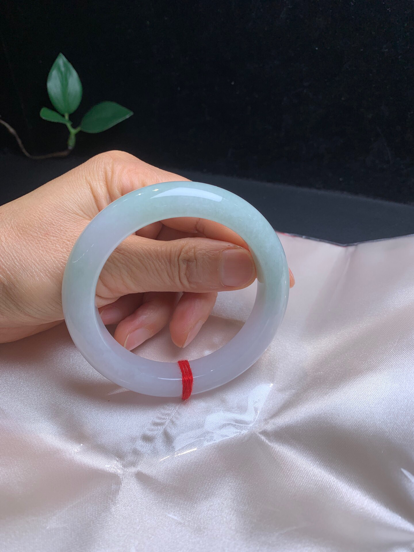 612976,57浅绿底手镯,12.9-9.5mm,一般带浅绿底色,清新干净,完美的。超值价💰11800 #优石客珠宝#香玉荟萃