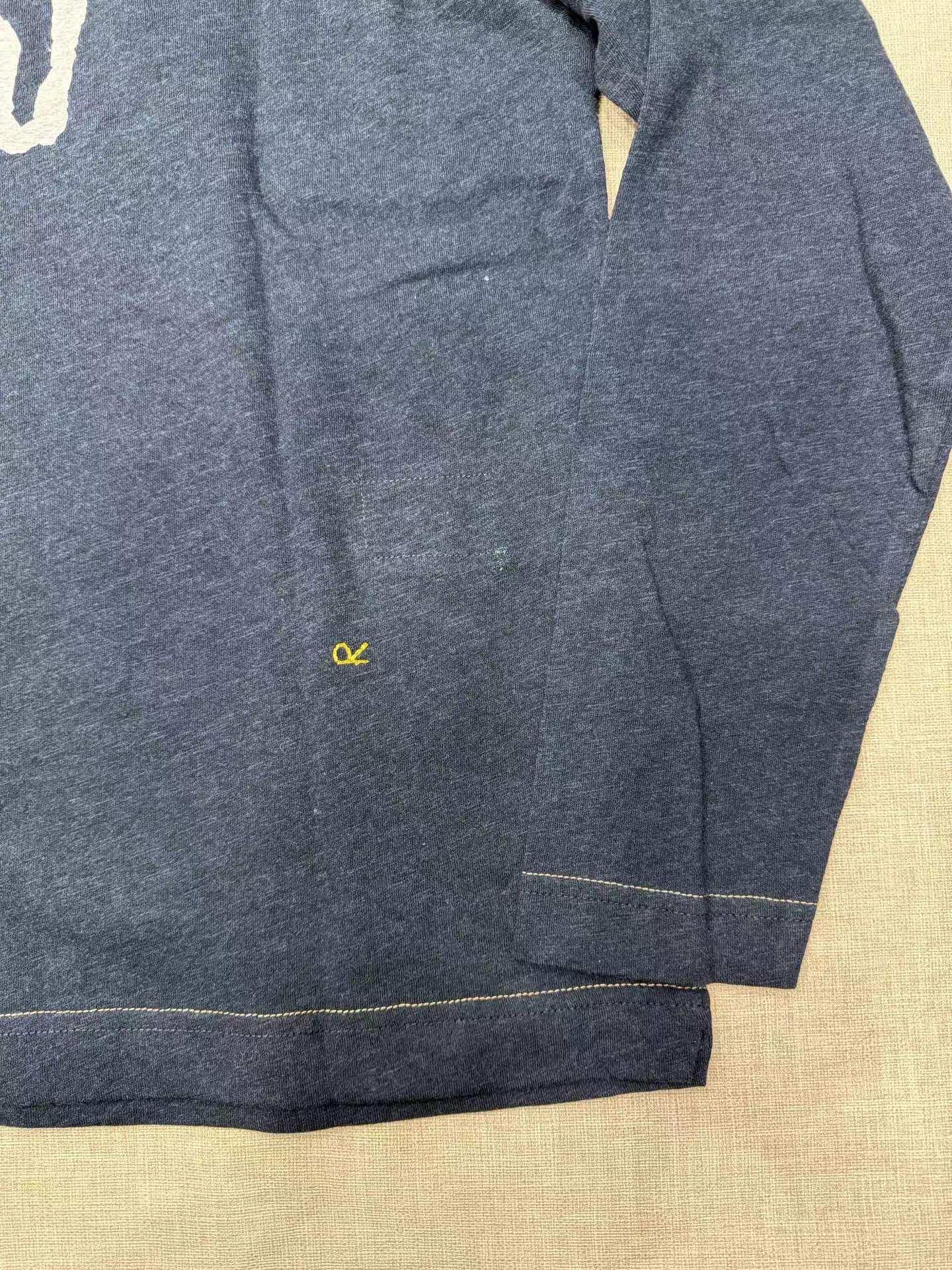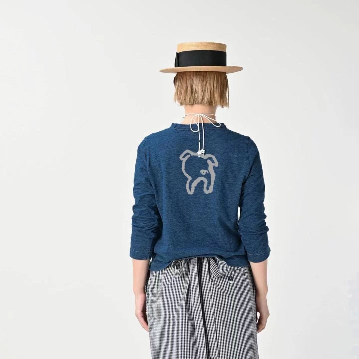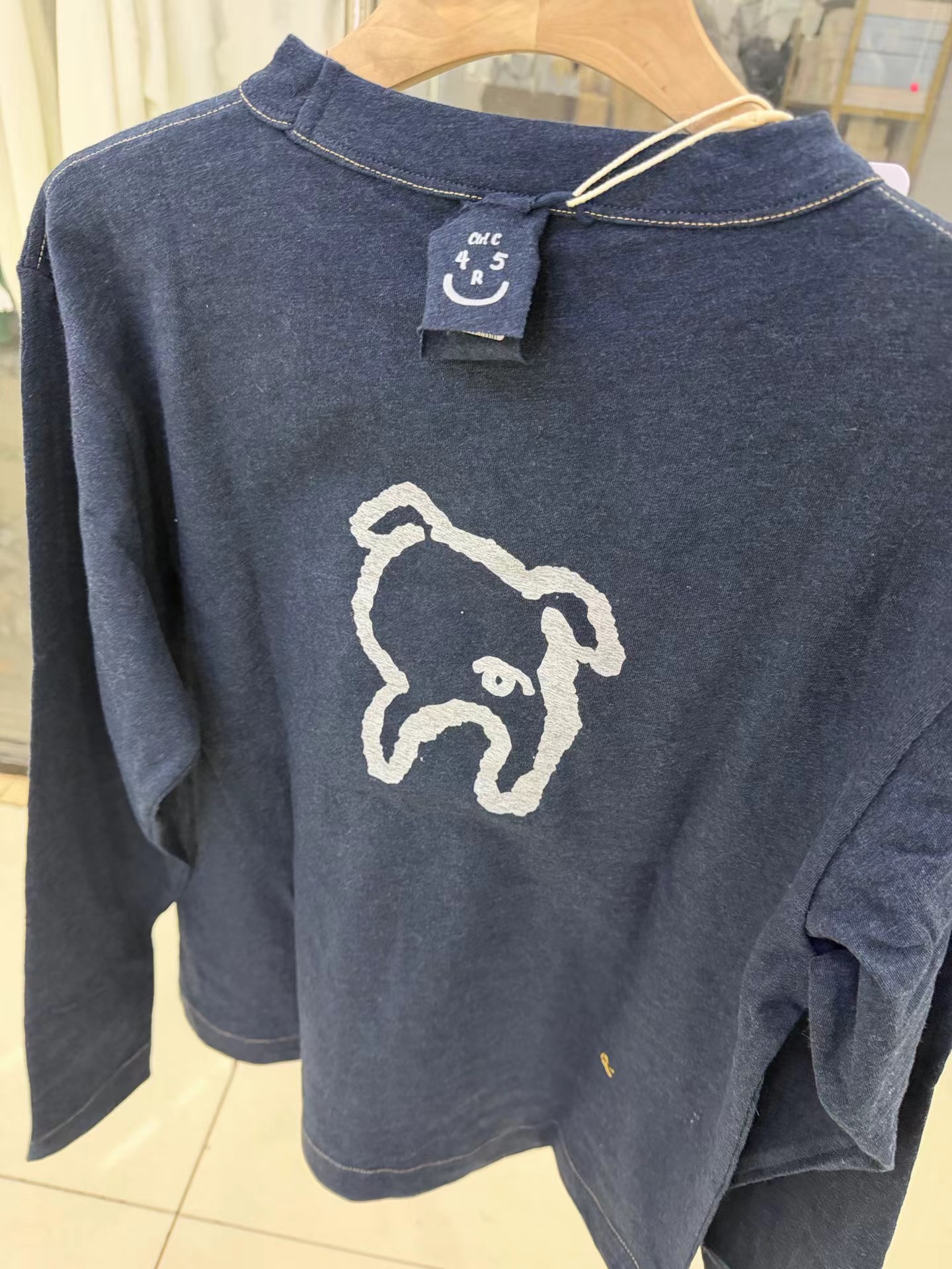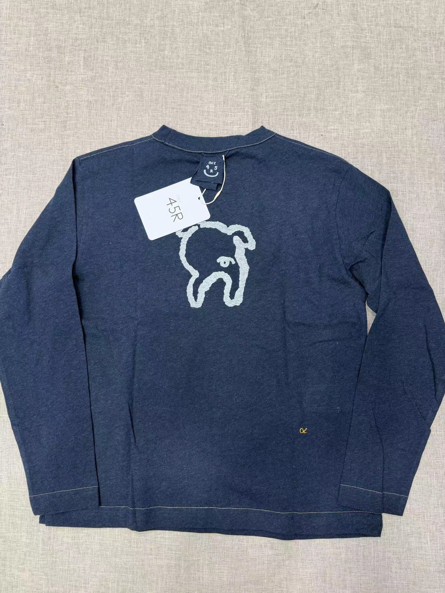 很仙很仙的长袖tee,胸口小标刺绣。靛蓝圆领长袖复古上衣E031160