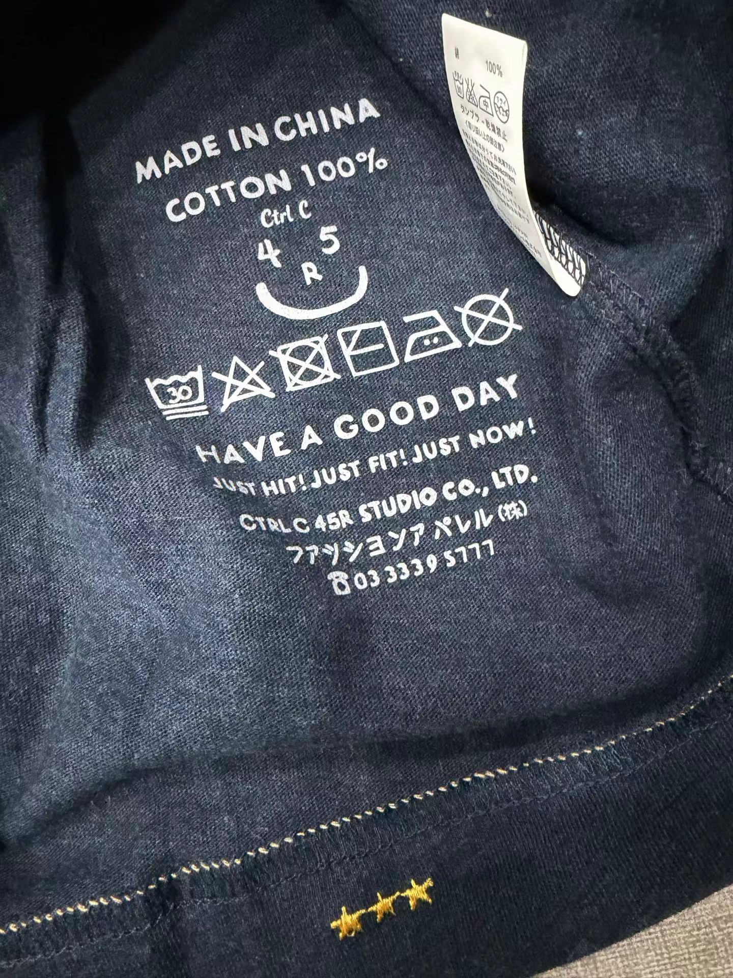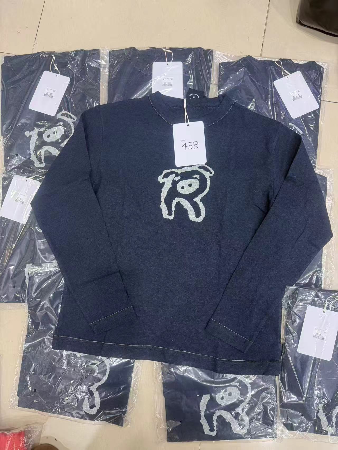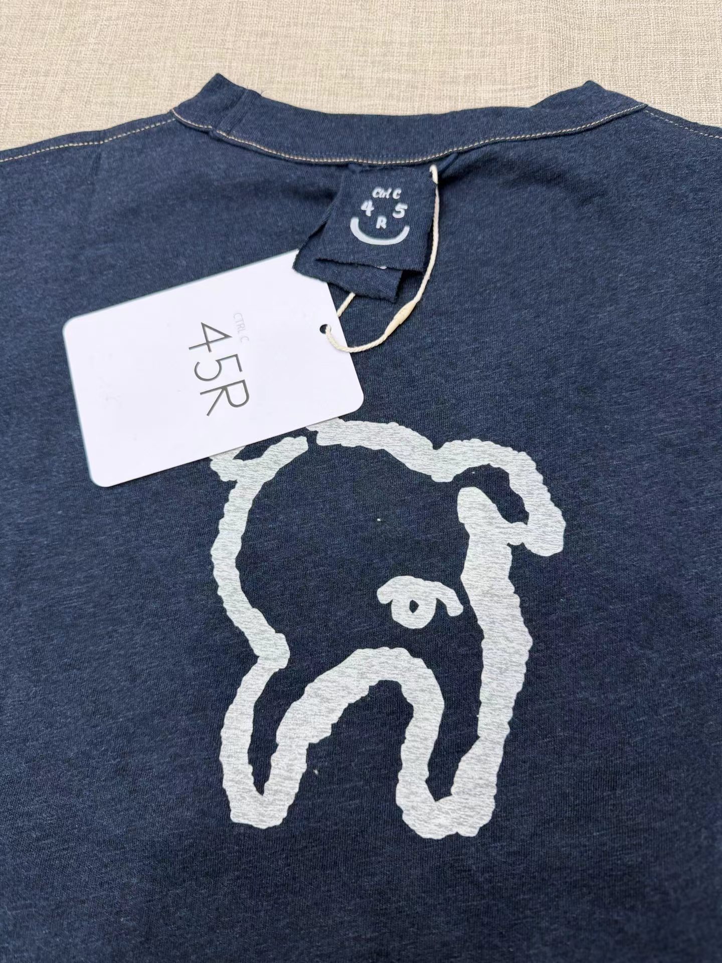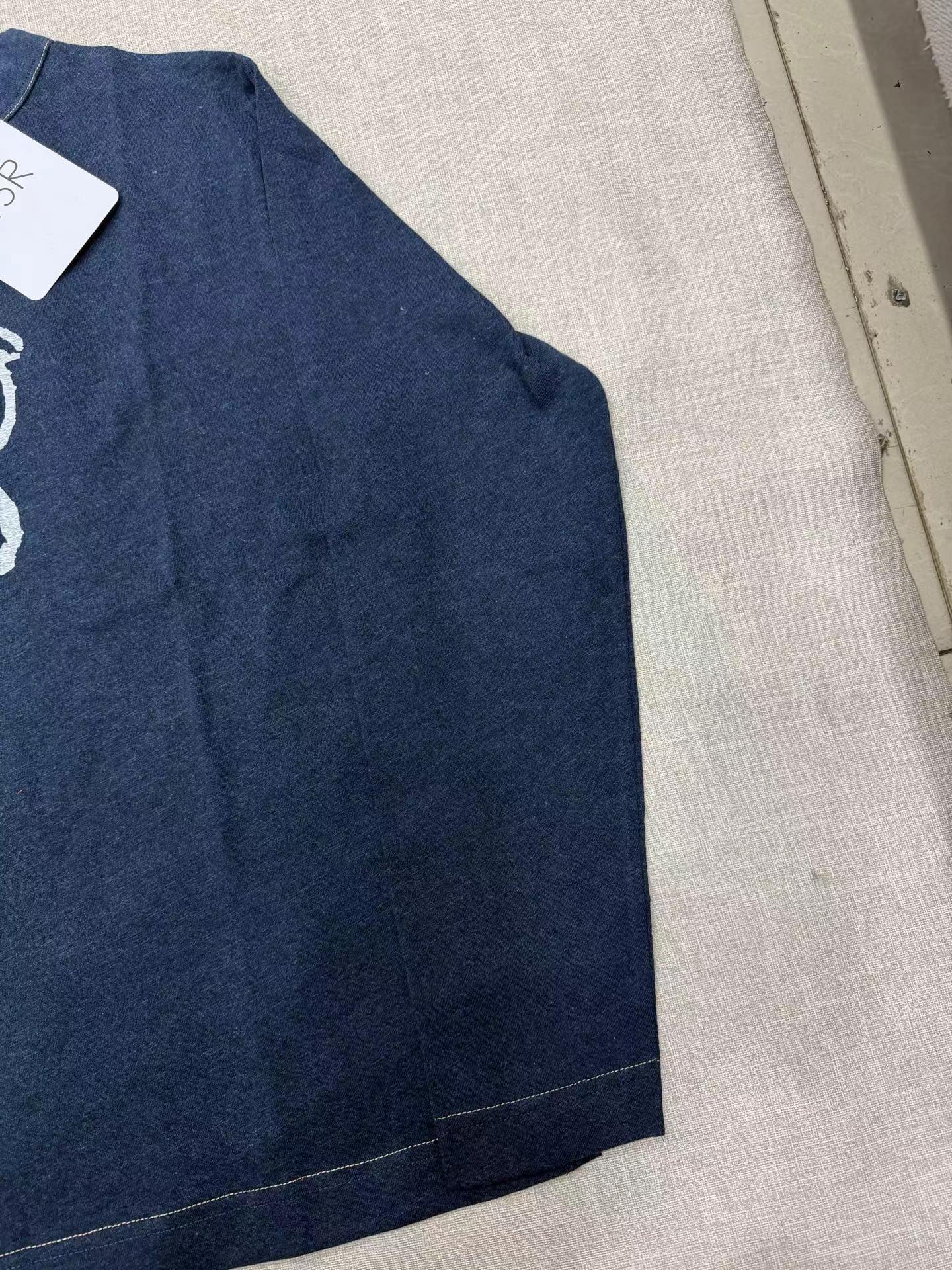 很仙很仙的长袖tee,胸口小标刺绣。靛蓝圆领长袖复古上衣E031160