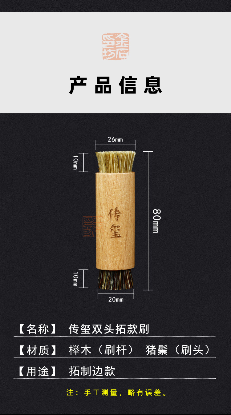 金石印坊监制 传玺双头拓款刷 拓边款工具
